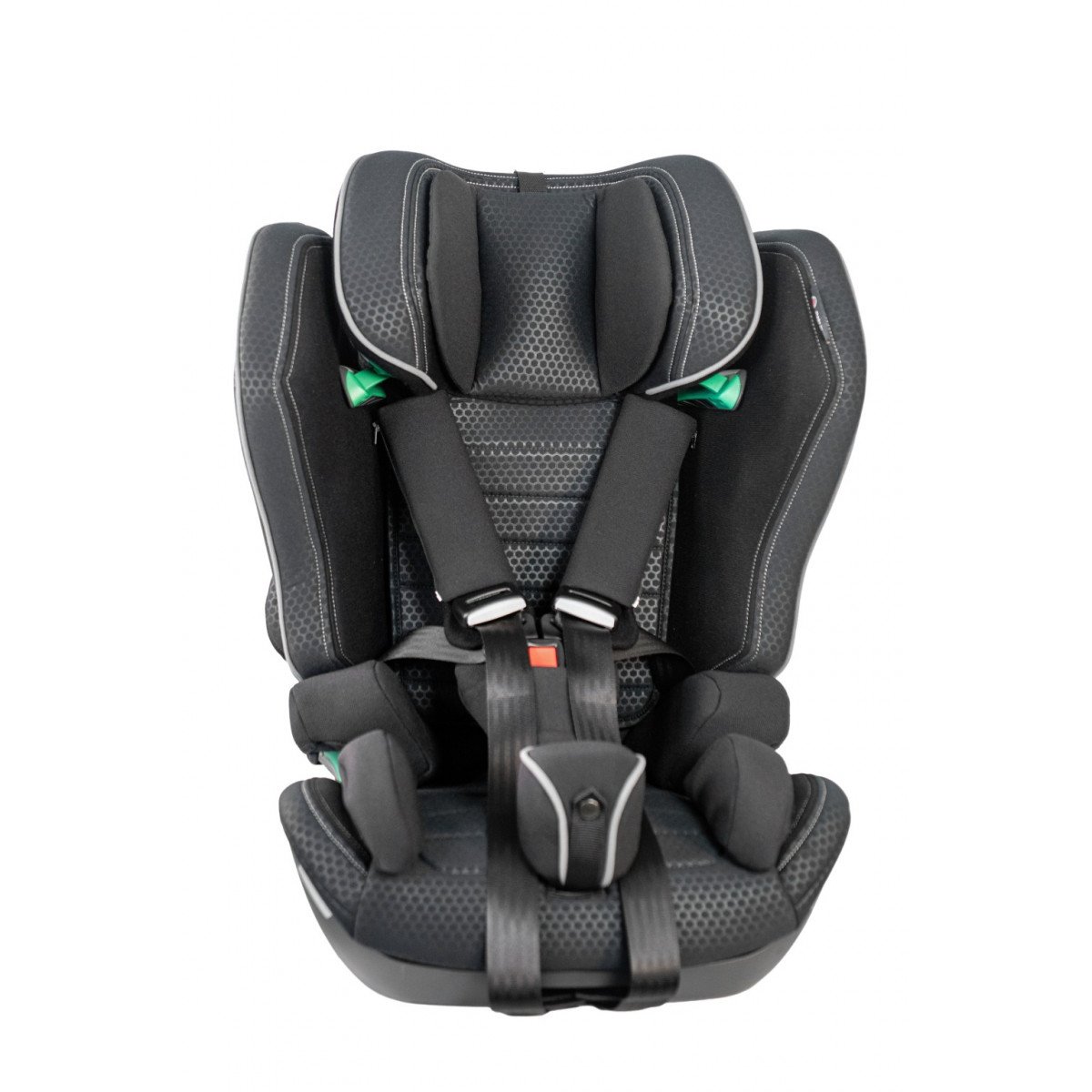 Кресло формирует стабильную посадку и поддерживает физиологически правильное положение тела во время движения. Анатомическая форма сиденья и спинки в сочетании с эргономичным дизайном и усиленной боковой защитой повышает уровень безопасности и снижает утомляемость в дороге. Регулируемый подголовник, боковые опоры и направляющие элементы позволяют точно адаптировать кресло под индивидуальные параметры ребёнка.