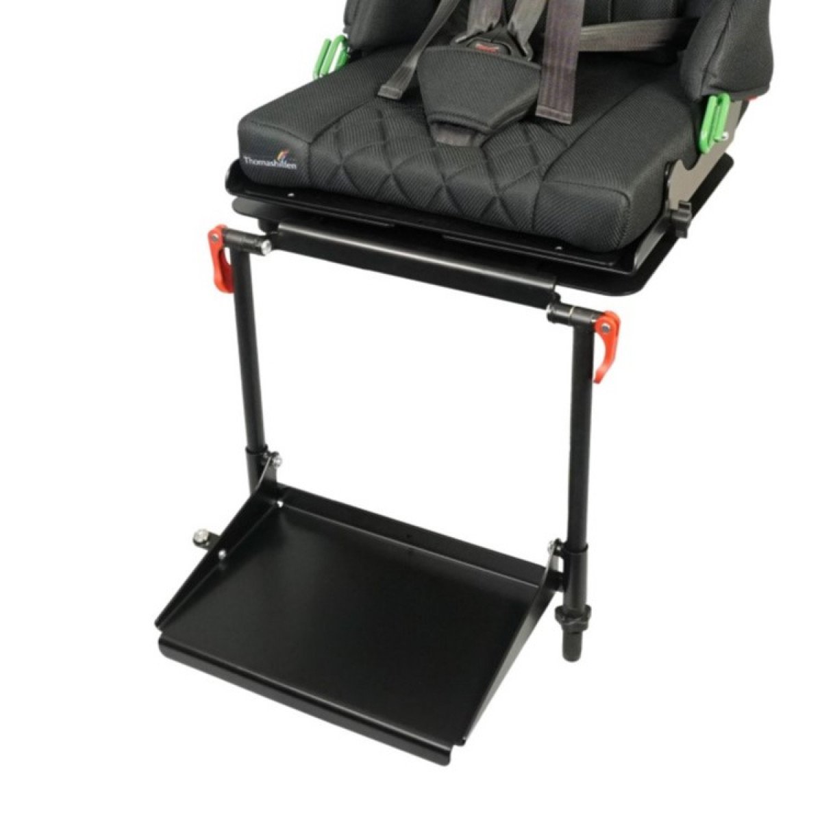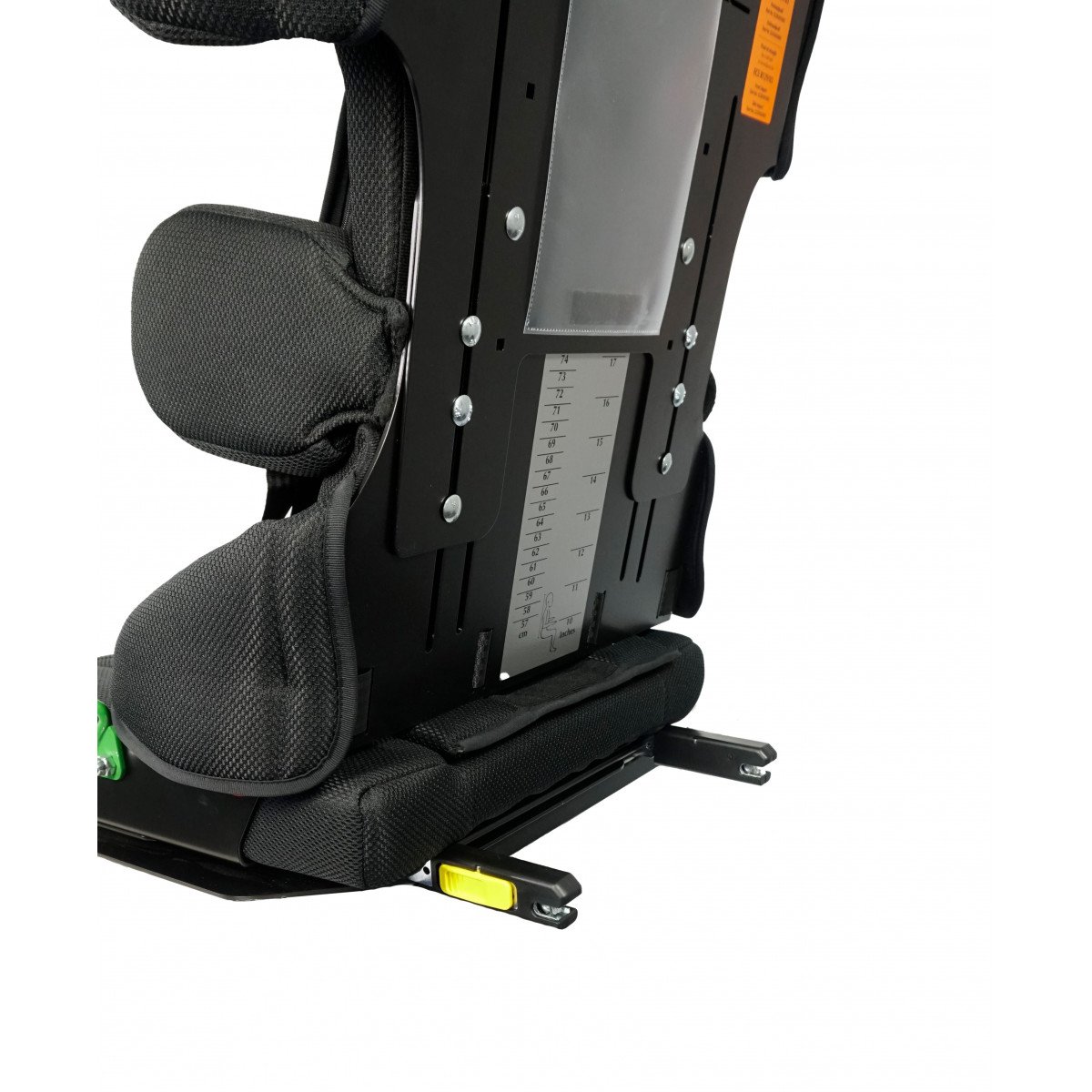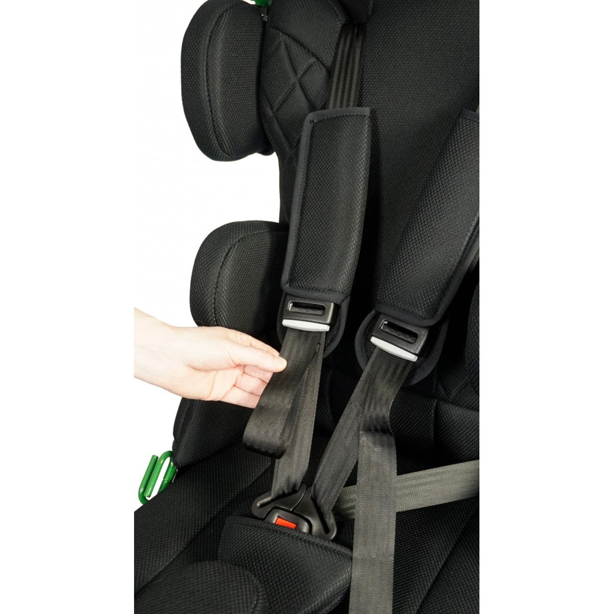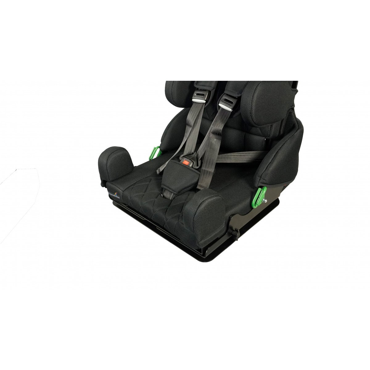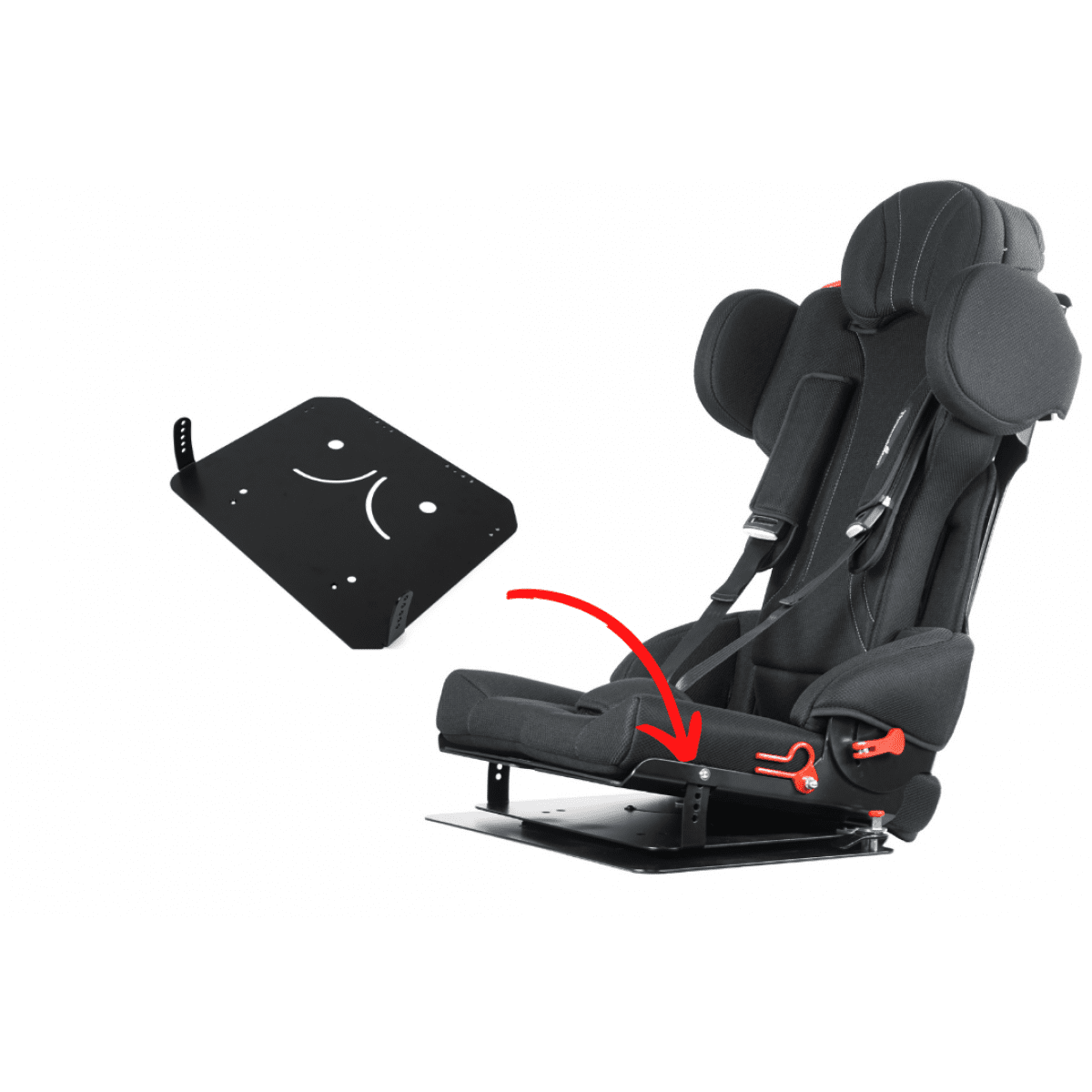 Для правильной поддержки предусмотрены плавная регулировка высоты спинки, анатомичный подголовник и опоры для бёдер. Важной особенностью модели являются плечевые поддержки, которые стабилизируют положение ребёнка и предотвращают излишние наклоны во время движения. Дополнительно могут устанавливаться боковые поддержки с откидным механизмом, усиливающие фиксацию туловища.