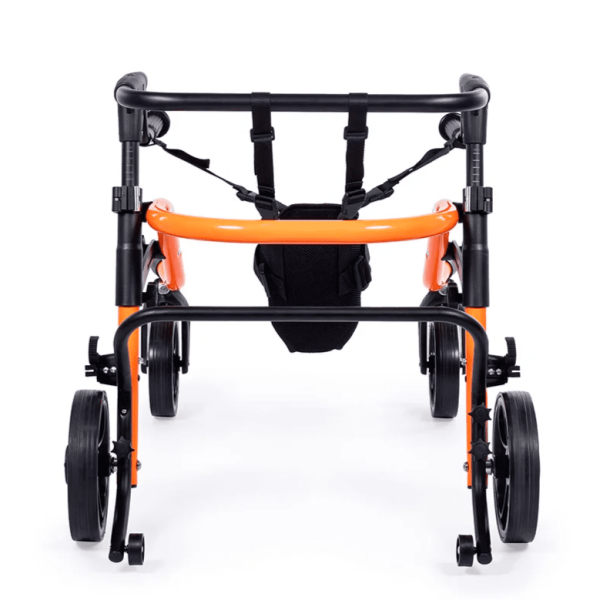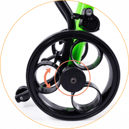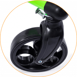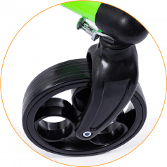 Продуманная колёсная система помогает контролировать движение. Передние колёса фиксируются по направлению, помогая ребёнку двигаться увереннее и спокойнее. Задние колёса оснащены регулируемым замедлителем — скорость движения можно настроить под возможности пользователя. Дополнительная защита от отката назад повышает безопасность и даёт ощущение надёжности во время занятий.