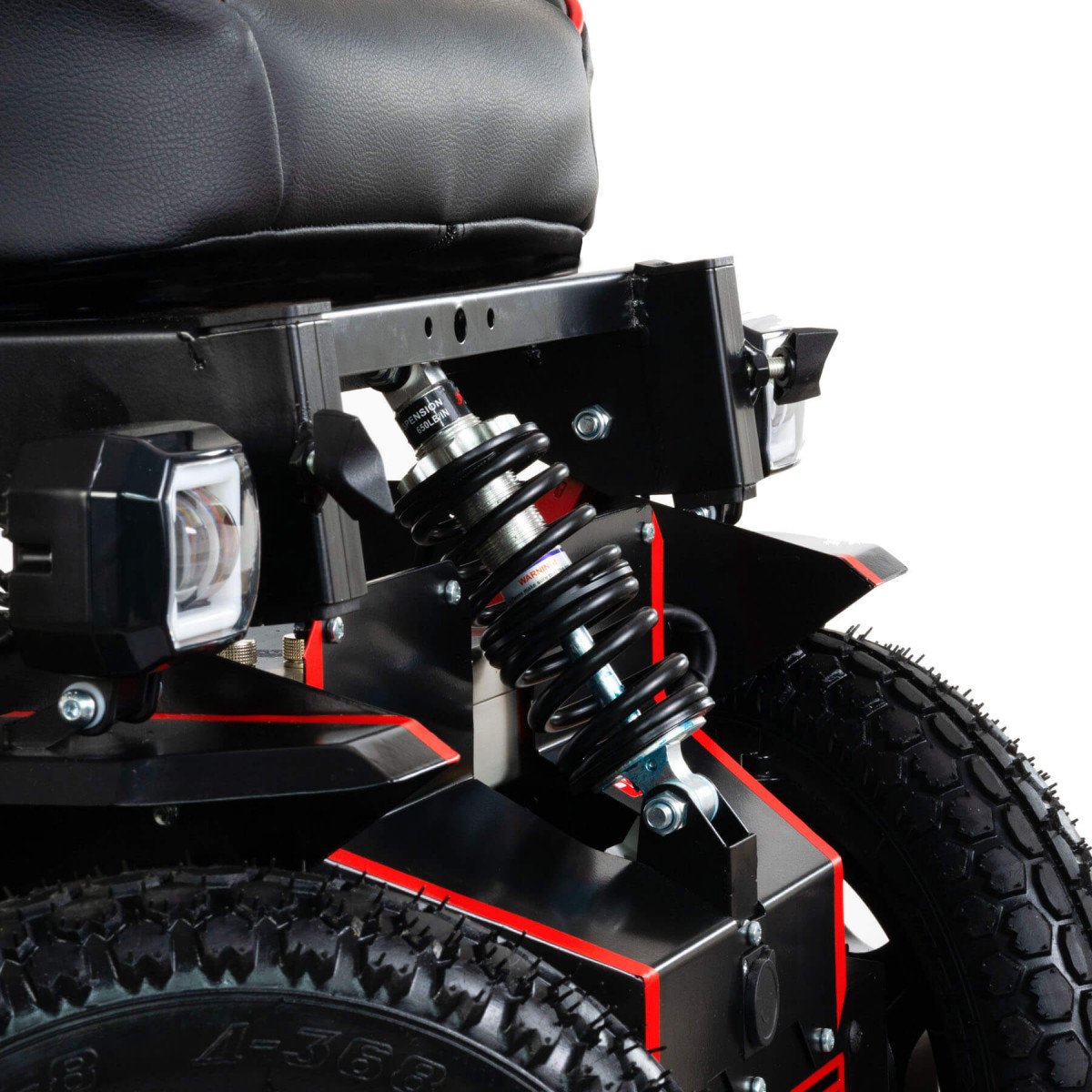 Важной особенностью Caterwil Ultra 4WD является то, что кресло установлено на очень энергоёмкой подвеске с прогрессивными амортизаторами. К преимуществам данной модели можно также отнести её компактные габариты.