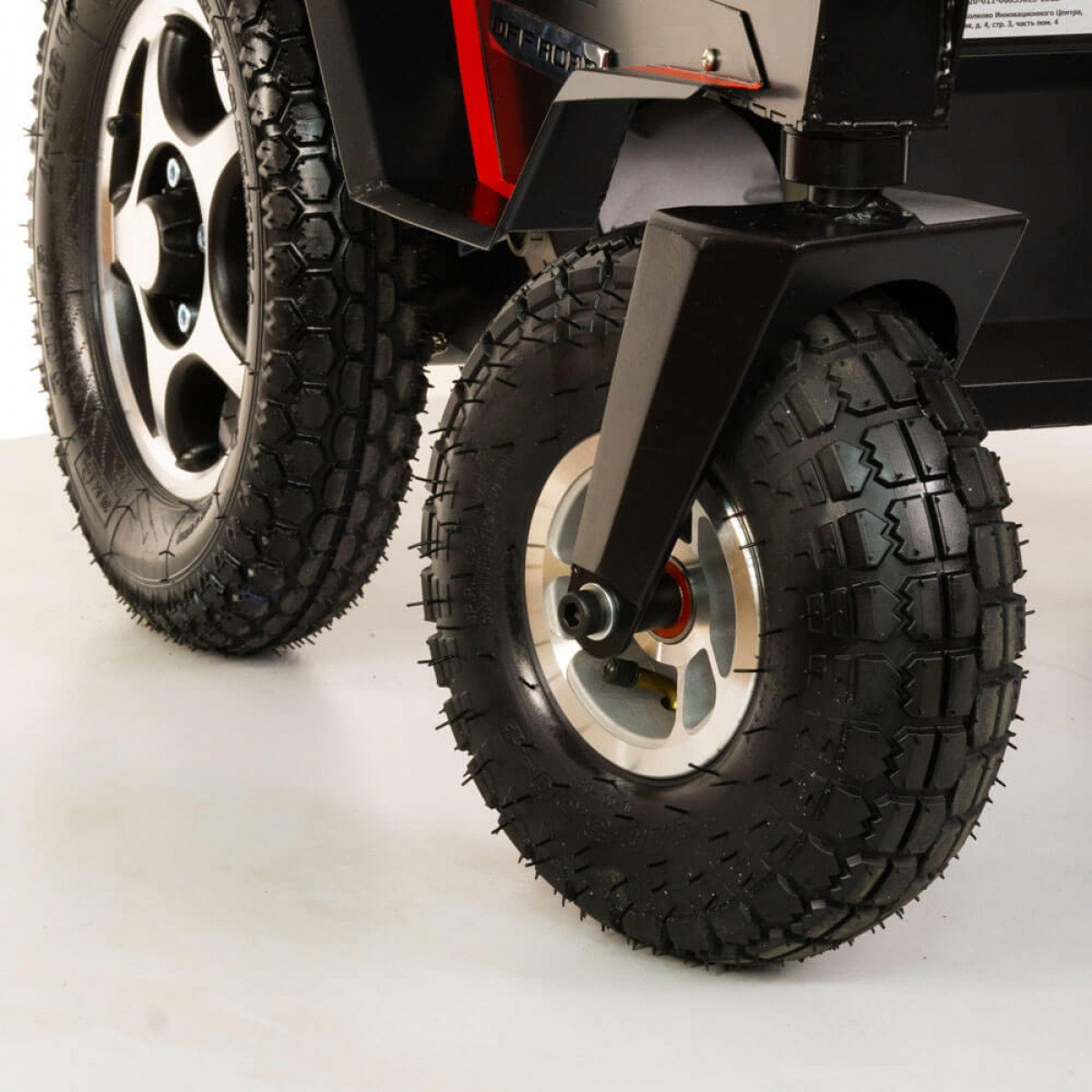 - Передние колёса пневматические, виброгасящие 26 см