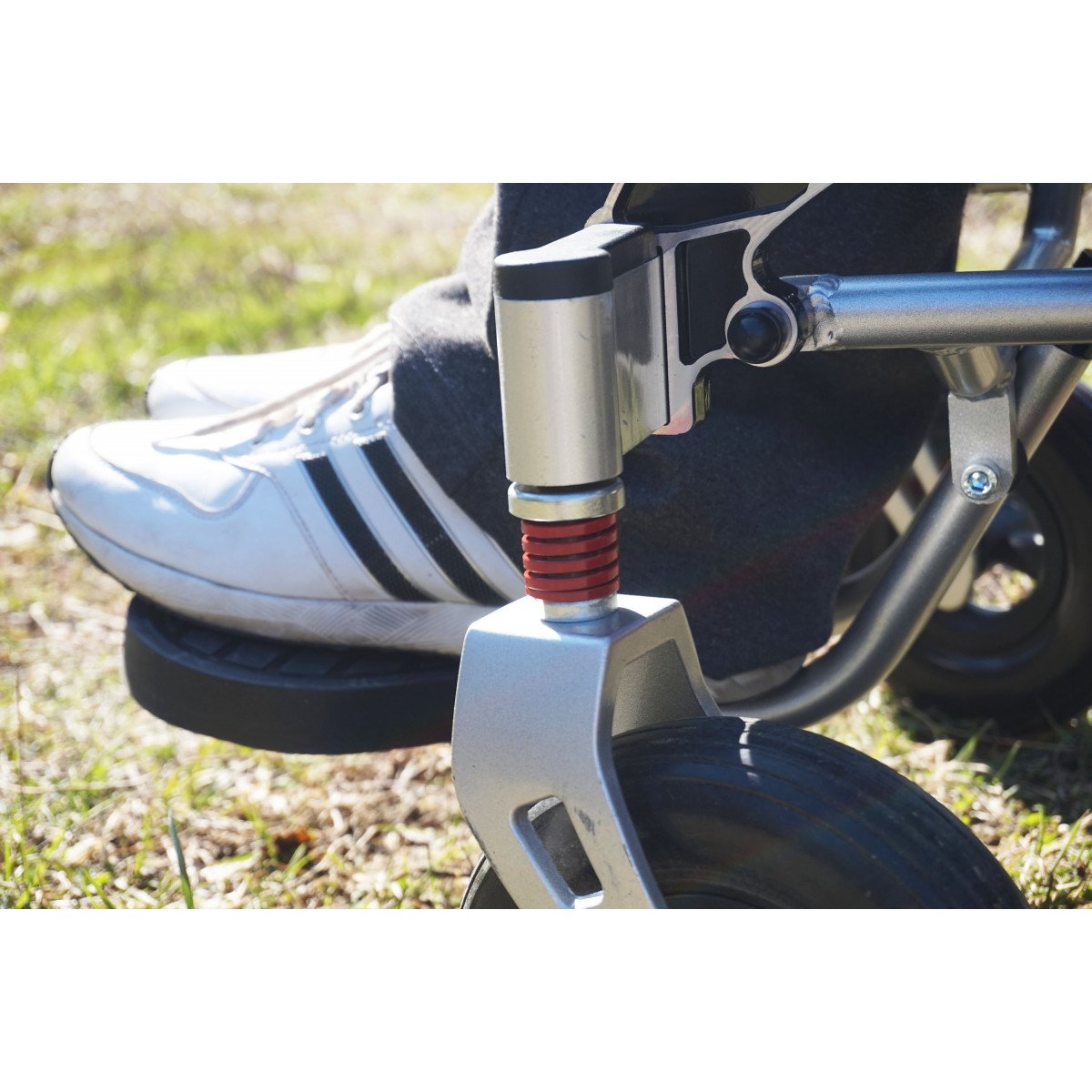 Caterwil Ultra Lite оборудована пневматическими задними колёсами для мягкого хода и передними цельнолитыми — из прочной, немаркой чёрной резины. Такая комбинация обеспечивает устойчивость, манёвренность и минимальное сопротивление на поворотах и разворотах. Под сиденьем расположена практичная сумка на молнии.