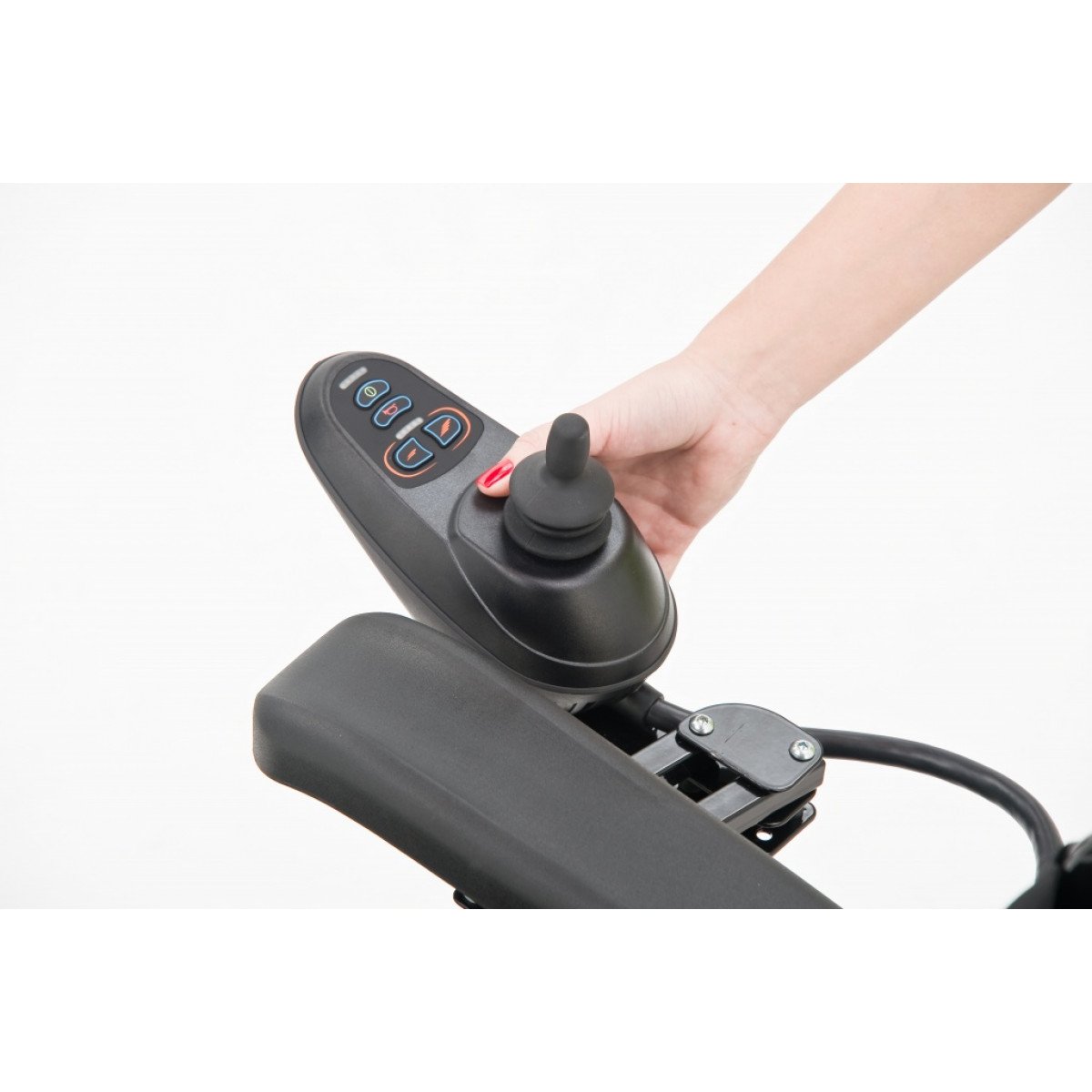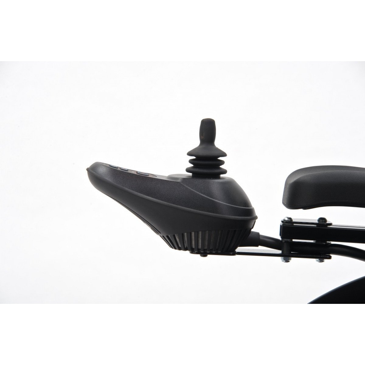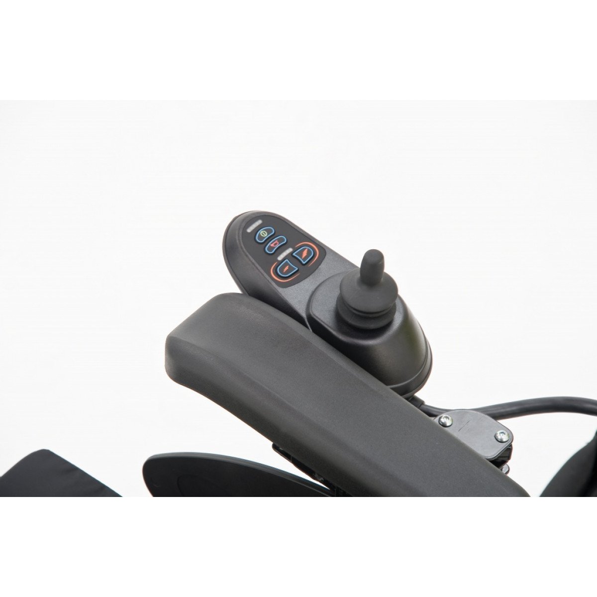 Регулируемая по высоте, съёмная спинка с ребром жёсткости обеспечивает максимально комфортную и надёжную опору. Управление с помощью джойстика, который можно установить как под левую, так и под правую руку. Данный джойстик даёт практически неограниченные возможности его настройки под индивидуальные параметры пользователя.
