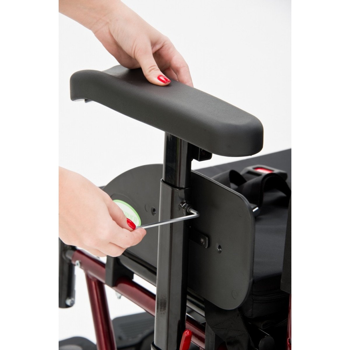 Подлокотники откидные, съёмные, регулируемые по высоте с мягким ложементом, с возможностью отклонения вперёд или назад на 90°. Подножки поворотные, съёмные, регулируемые по высоте и углу наклона стопы.