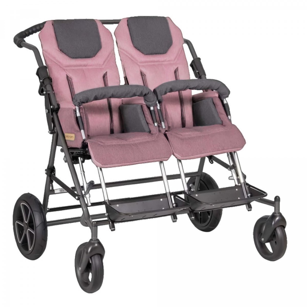 Есть возможность регулировать ручку для сопровождающего, снимать подножки и защитную дугу с каждого сиденья. Конструкция кресла и лёгкость настроек позволяет создавать максимально комфортные условия для каждого из детей.