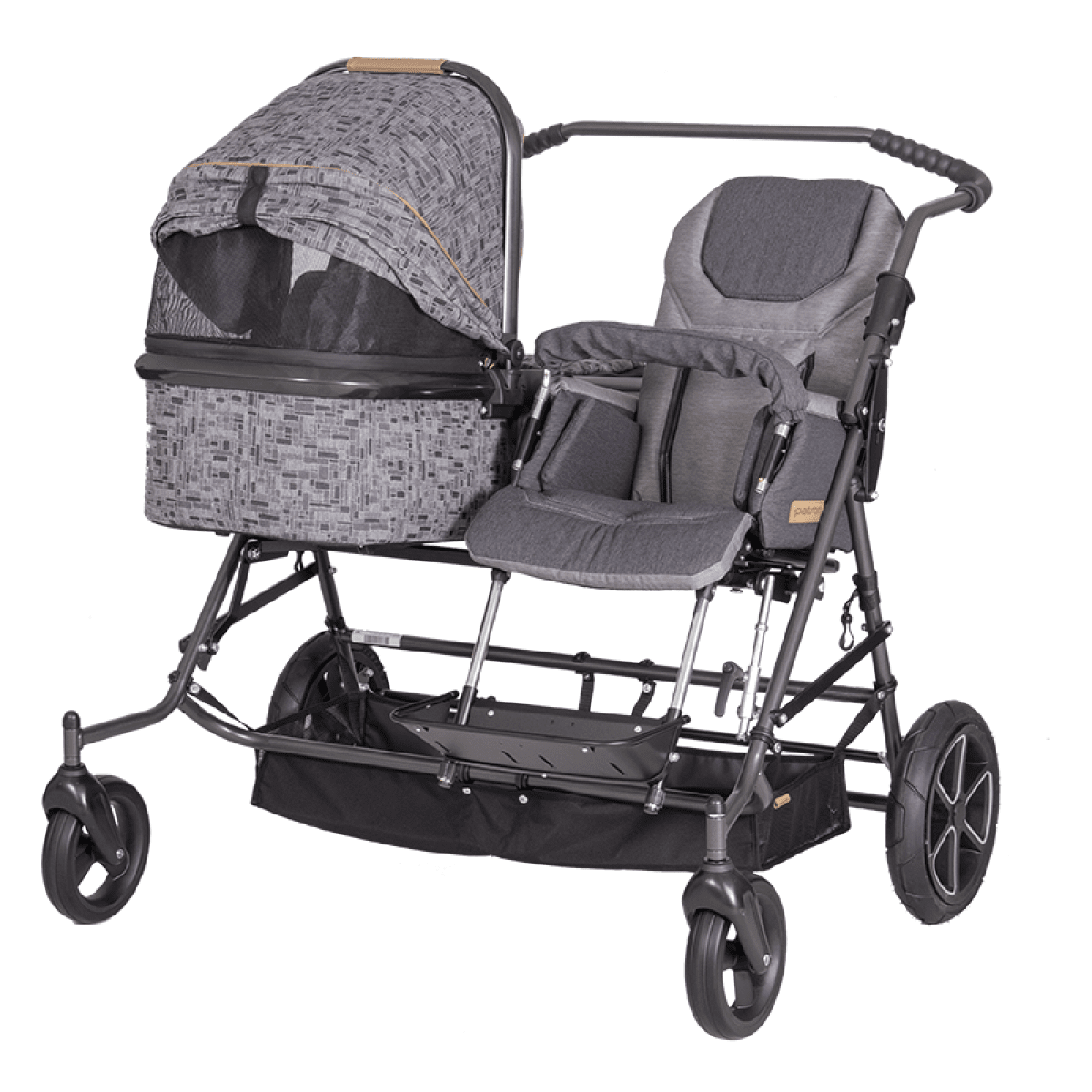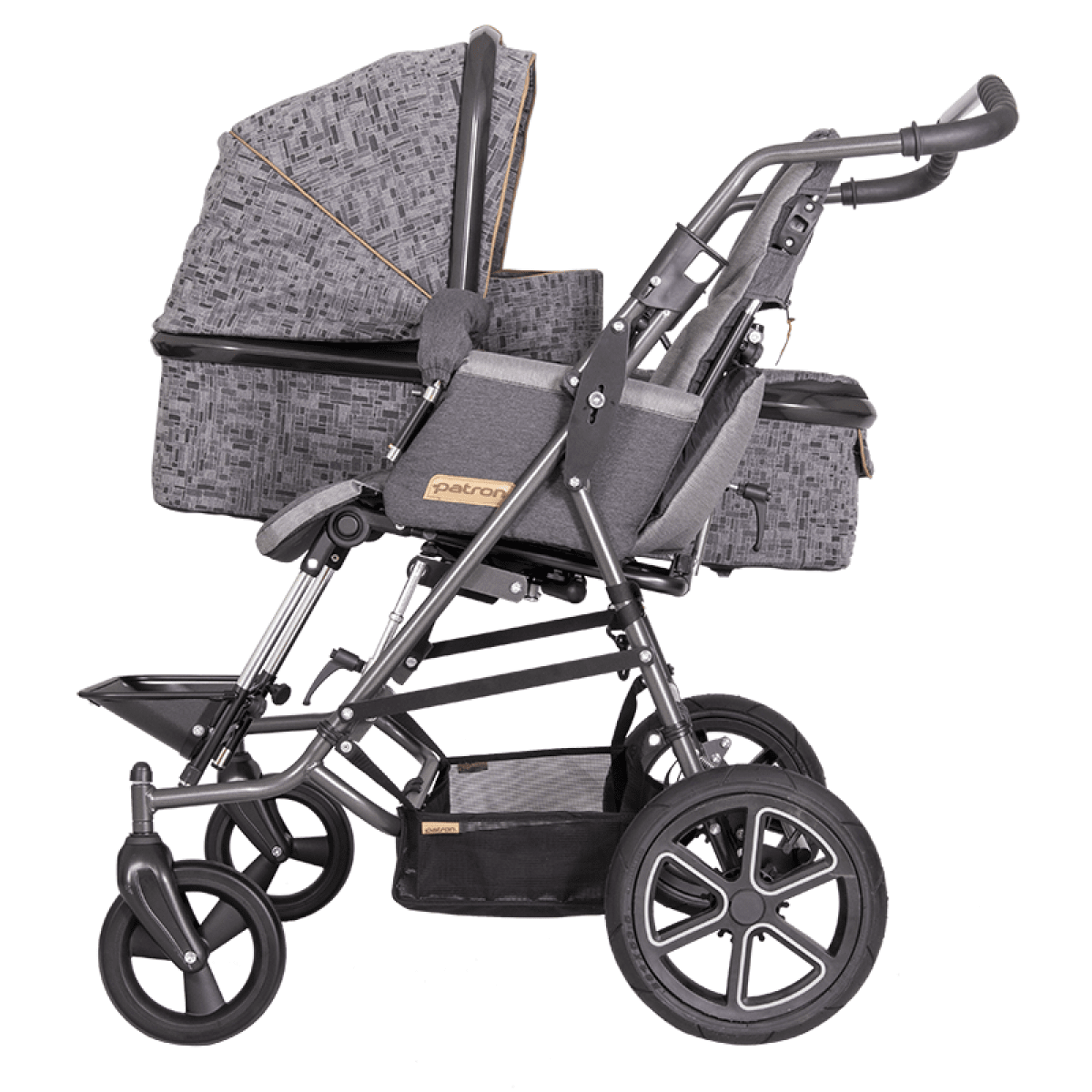 Patron Tom 4 Classic Duo-Combi (Патрон Том 4 Классик Дуо-Комби) — это универсальная прогулочная коляска для семей с двумя детьми, которая сочетает реабилитационное сиденье и люльку для новорождённого. Модель позволяет комфортно гулять с детьми разного возраста, включая использование ТСР с самого рождения.