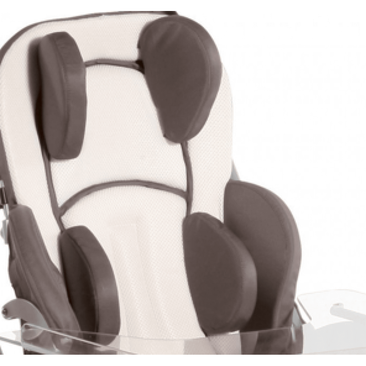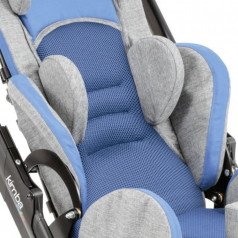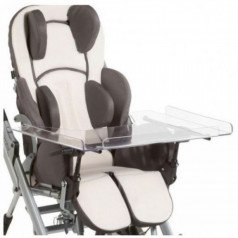 (сиденье, спинка MPS (короткая), шасси Kimba hi-low, съёмный регулируемый по углу наклона подголовник (контурный /трёхсекционный), боковые поддержки с функ. отведения анатомические, абдуктор, майка неопр. + тазовый фиксатор неопрен, ремни на стопы, столик).