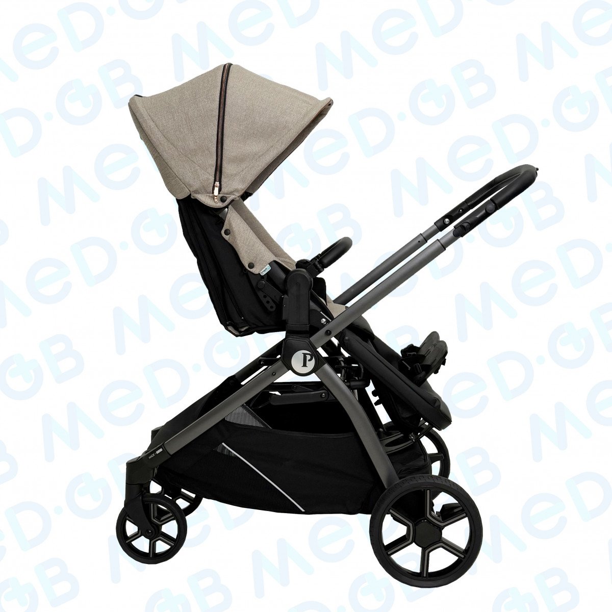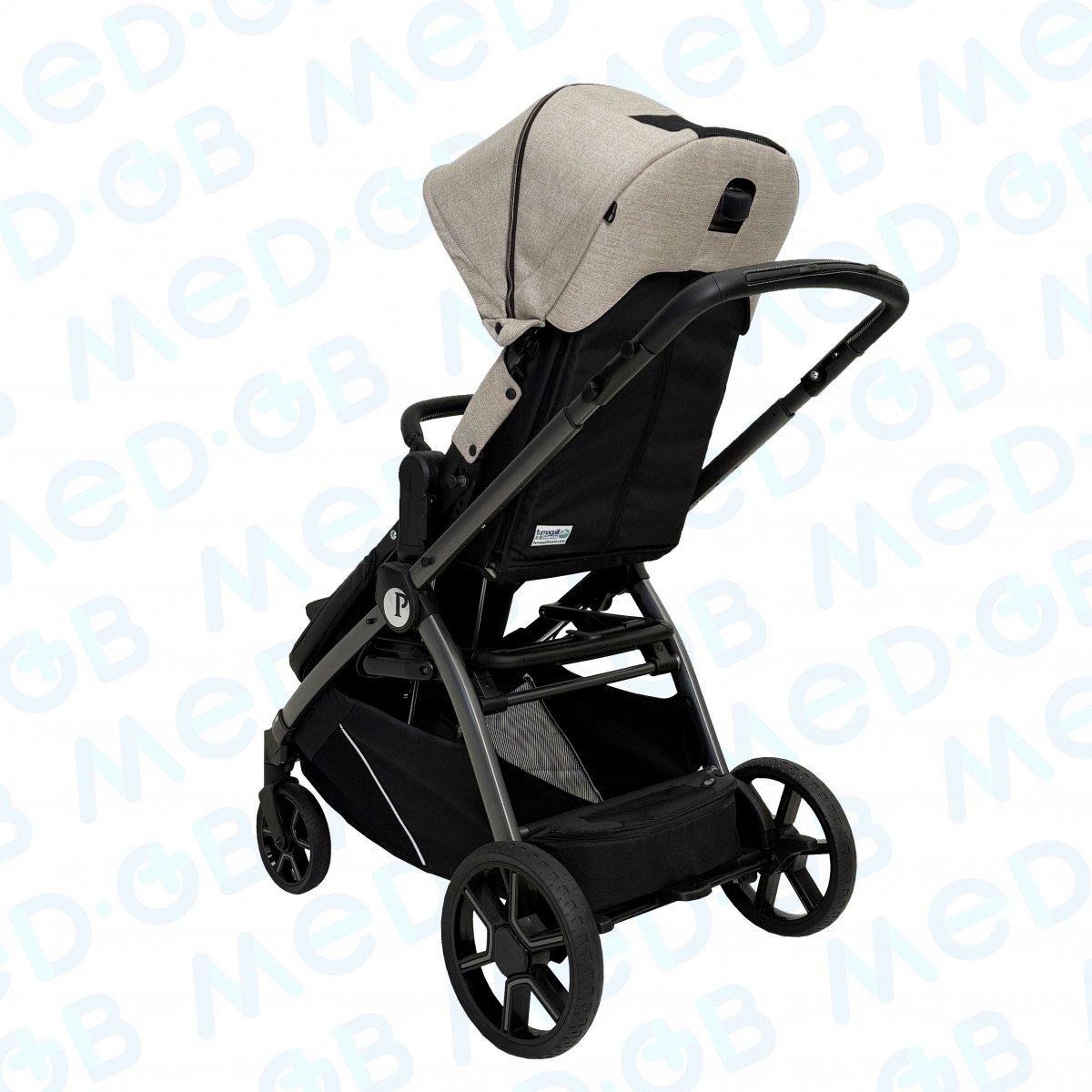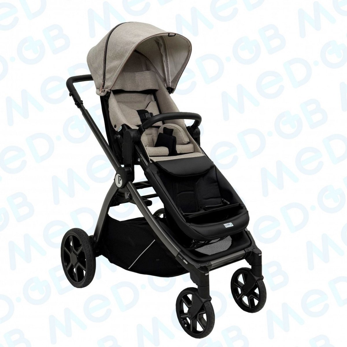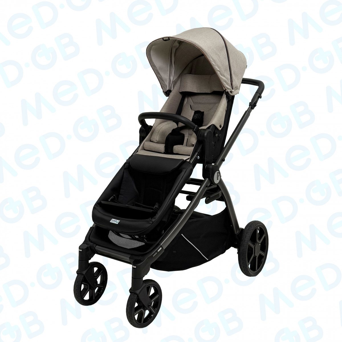 Коляска имеет легкую, но в то же время прочную алюминиевую раму, обеспечивая маневренность и простоту в управлении. Модель разработана с акцентом на меры предосторожности, необходимые для контроля осанки и поддержки в течение прогулок. Это особенно важно для детей, которые не могут самостоятельно удерживать правильное положение.
