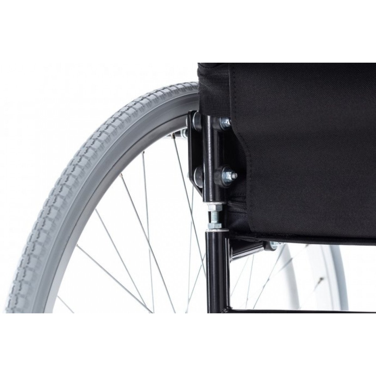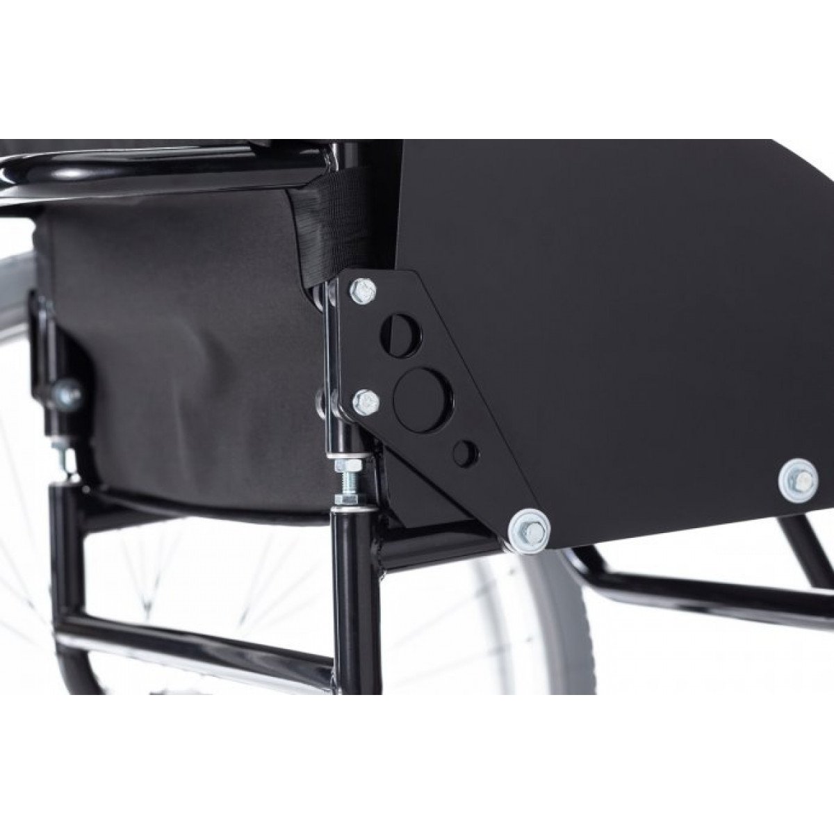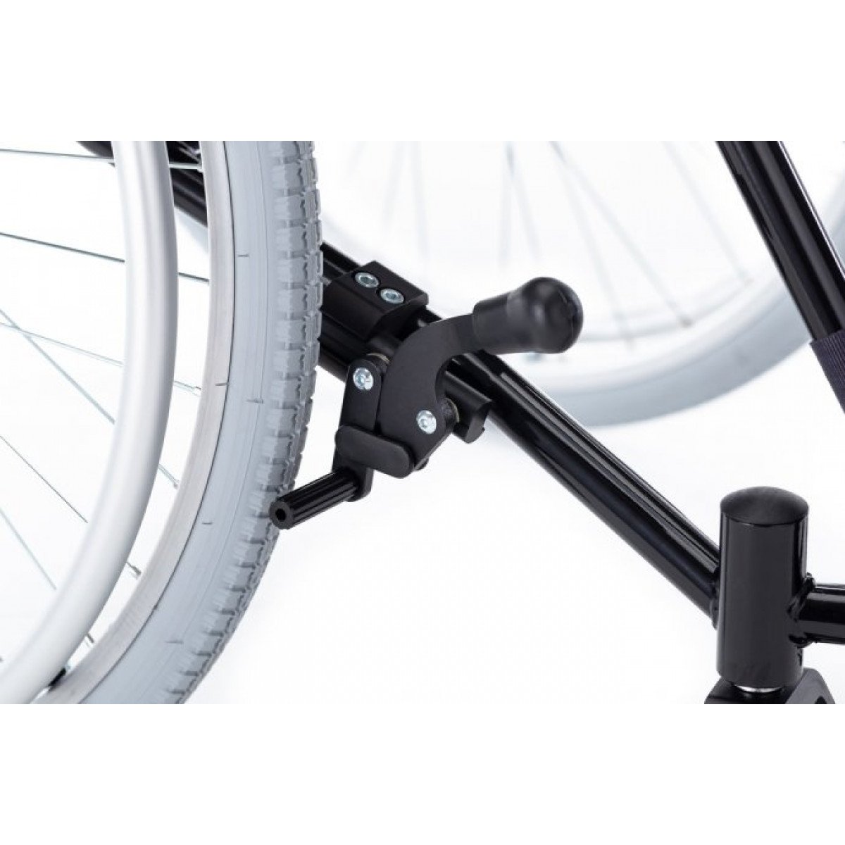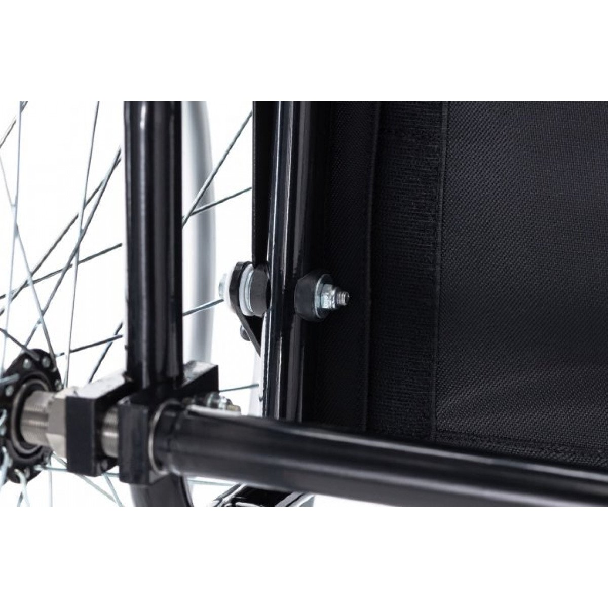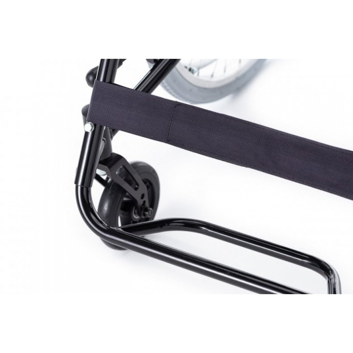 Кресло также оснащено спинкой с единой приваренной ручкой сзади, которая позволяет легко маневрировать и управлять коляской в сложных ситуациях. Катаржина Пикник «Стандарт» обладает элементами индивидуальной регулировки, позволяющими настроить опору для стоп, перемещая её вверх или вниз по диагонали. Кроме того, диапазон регулировки угла наклона спинки составляет 3°.