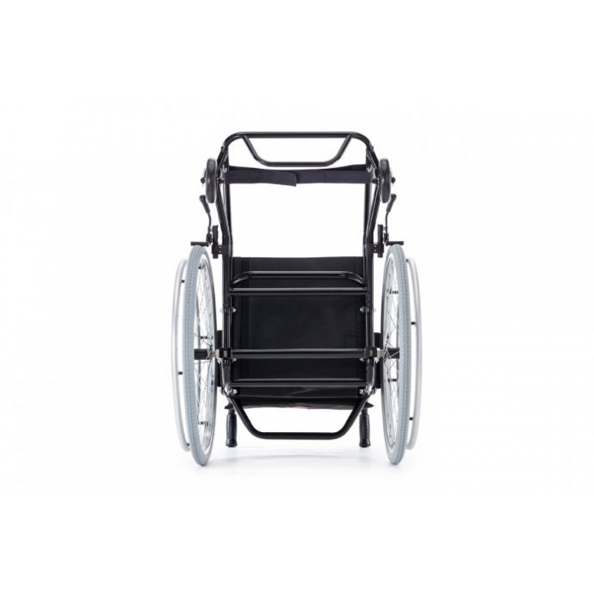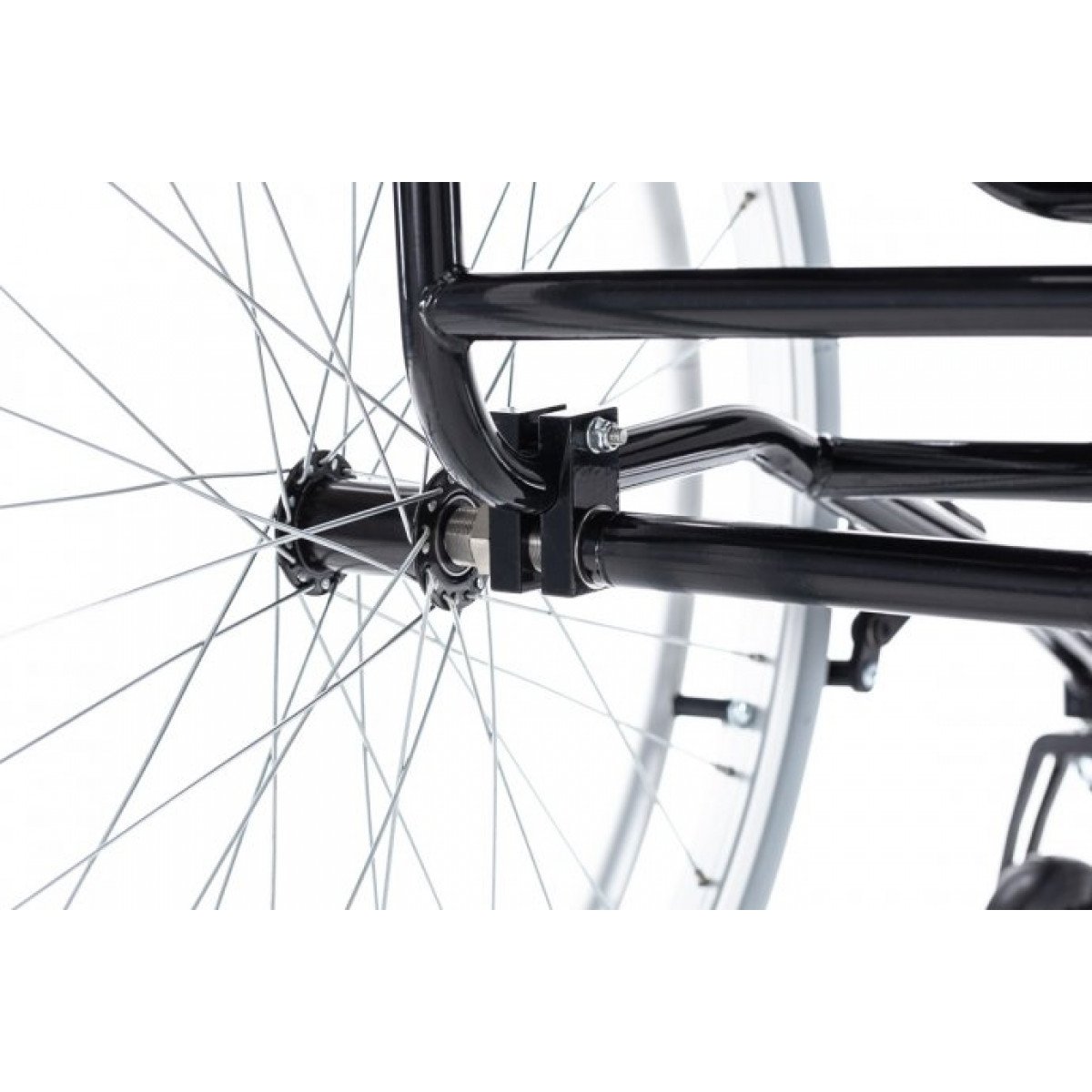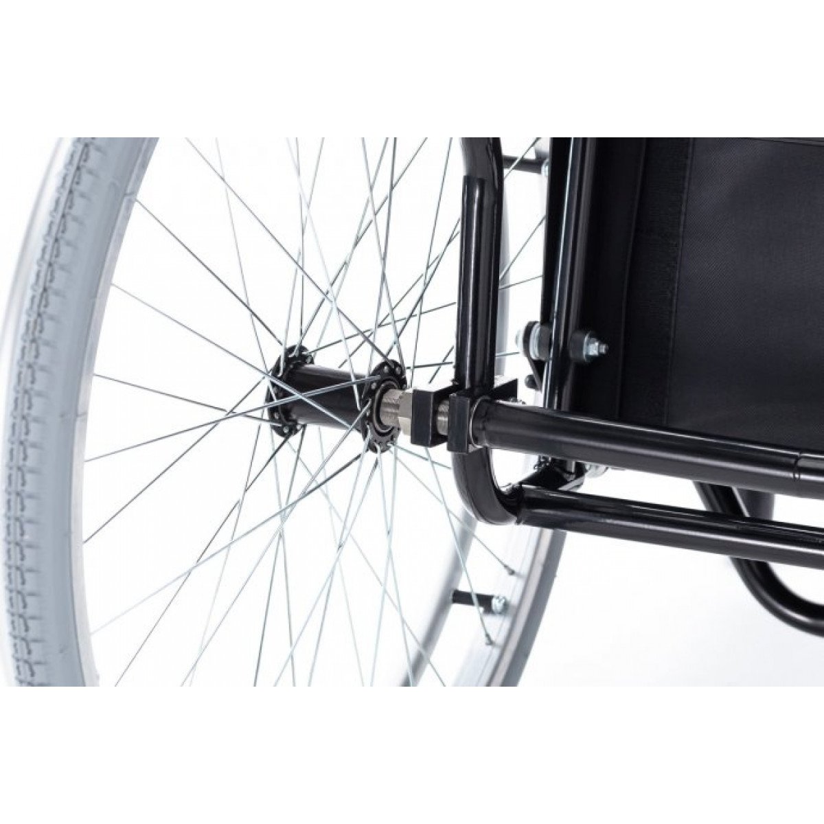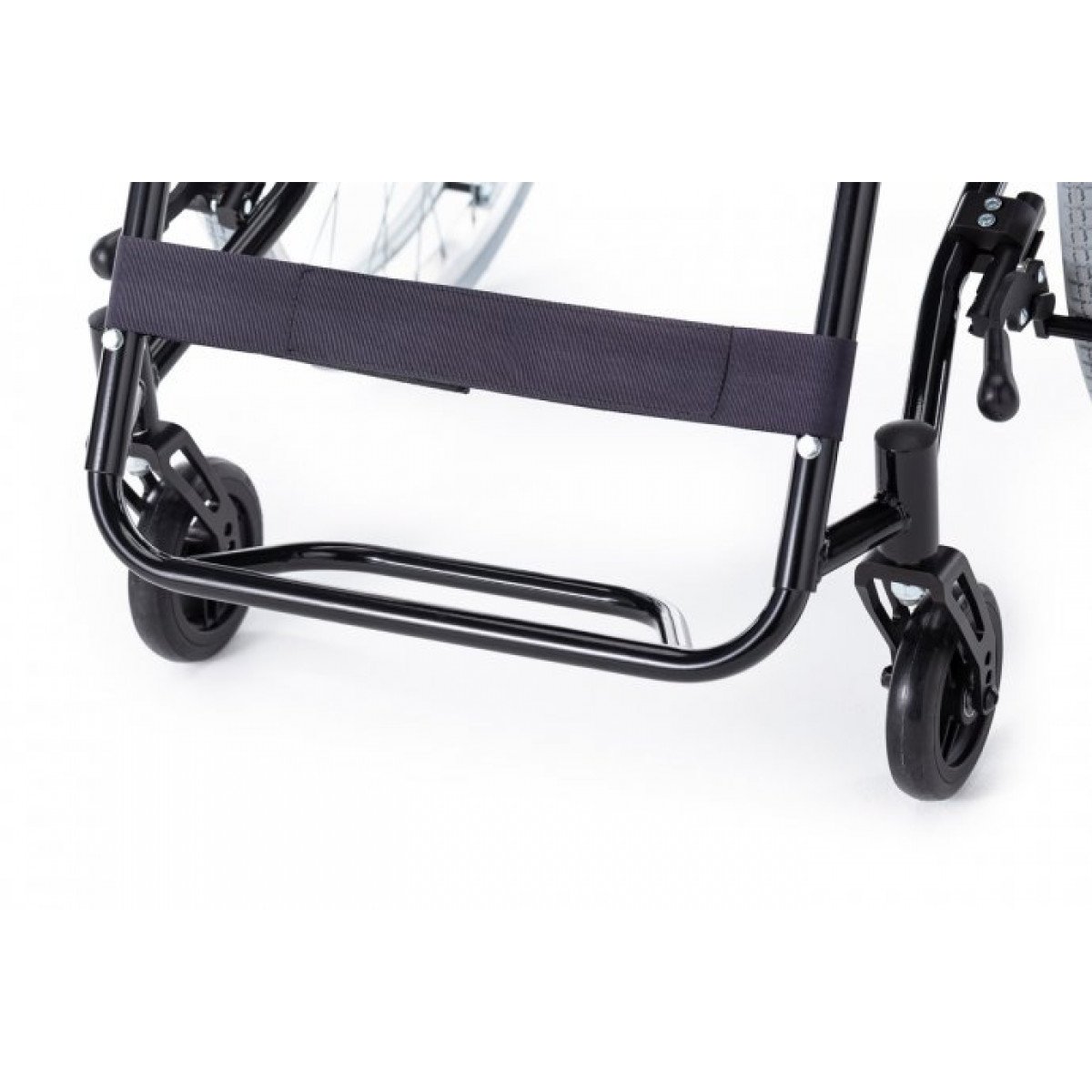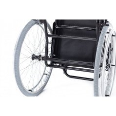 Кресло также оснащено спинкой с единой приваренной ручкой сзади, которая позволяет легко маневрировать и управлять коляской в сложных ситуациях. Катаржина Пикник «Стандарт» обладает элементами индивидуальной регулировки, позволяющими настроить опору для стоп, перемещая её вверх или вниз по диагонали. Кроме того, диапазон регулировки угла наклона спинки составляет 3°.