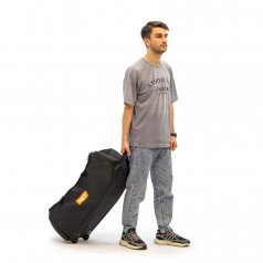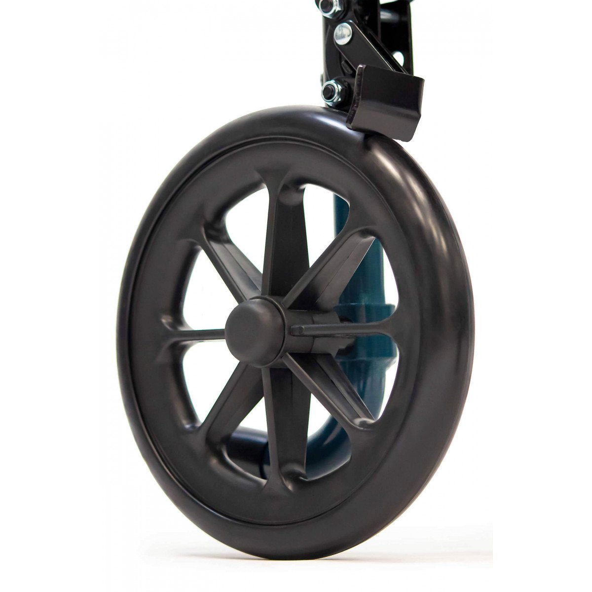 Складная рама по типу «сторона к стороне» и складывающаяся спинка позволяют быстро уменьшить габариты каталки для перевозки и хранения. Благодаря этому её удобно брать с собой в поездки, включая перелёты и поездки на общественном транспорте.