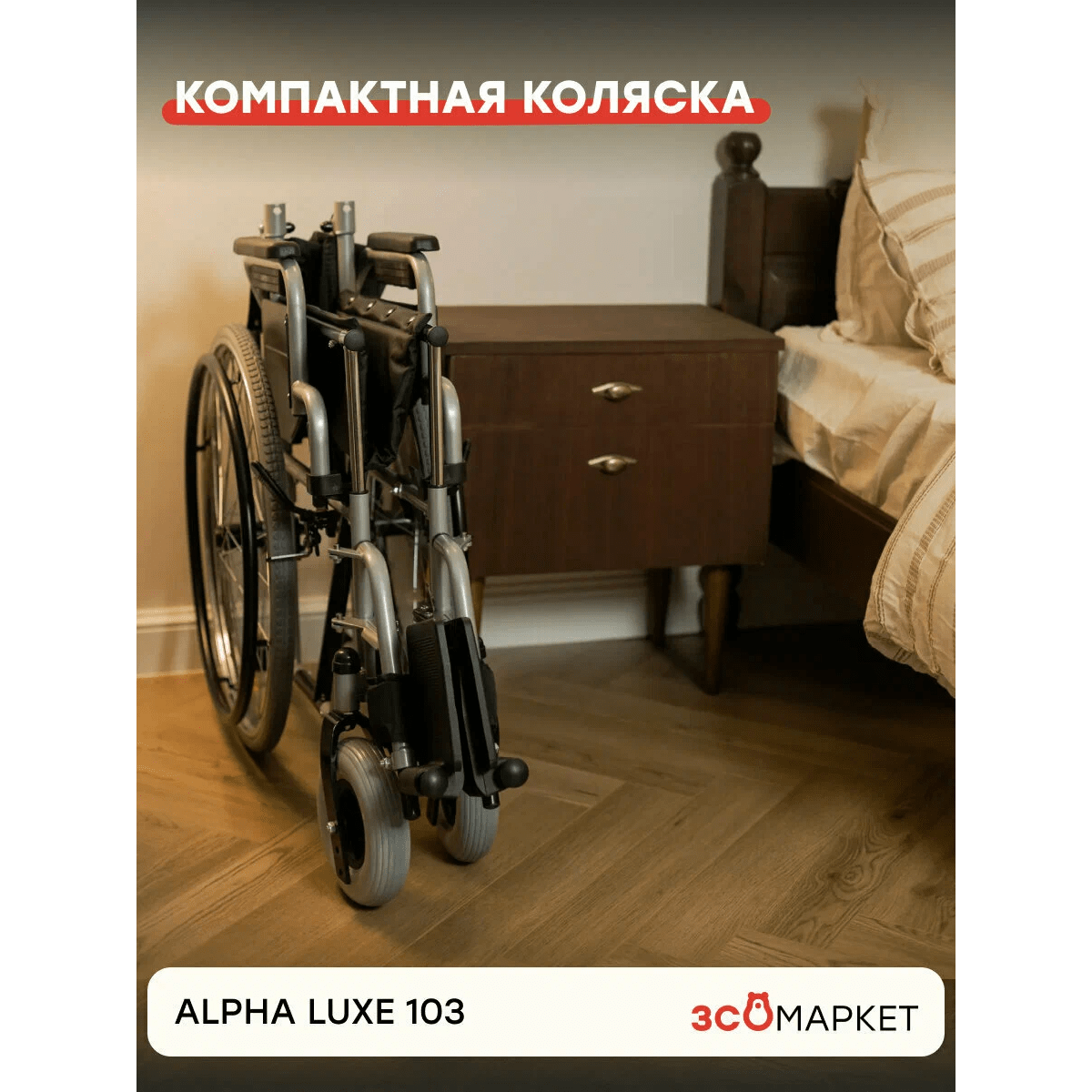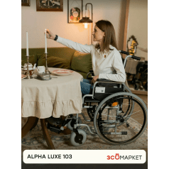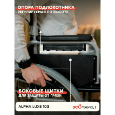 Кресло-коляска ЗСО Alpha Luxe 103 (Альфа Люкс 103) — универсальная модель с ручным приводом, рассчитанная на нагрузку до 130 кг. Подходит для дома и улицы, сочетает комфортную посадку, регулируемые элементы и надёжную конструкцию.