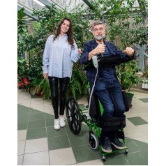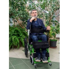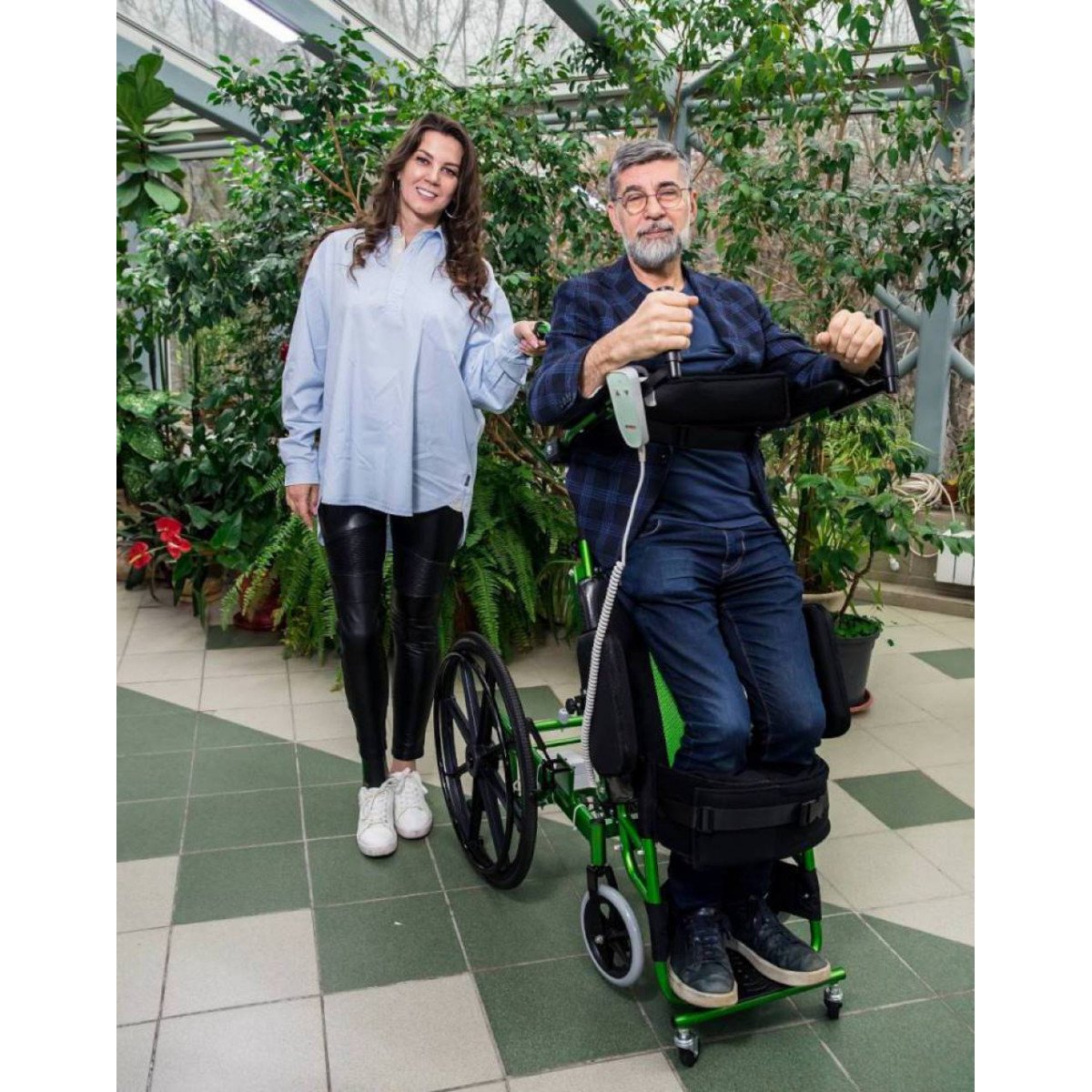 Управление осуществляется через удобный пульт, позволяющий пользователю самостоятельно активировать процесс подъёма. Вертикализация происходит плавно и безопасно, без лишнего напряжения. В комплект входят мягкие наколенники и надёжные ремни фиксации, которые обеспечивают стабильную и анатомически правильную поддержку тела в процессе подъёма и в положении стоя.