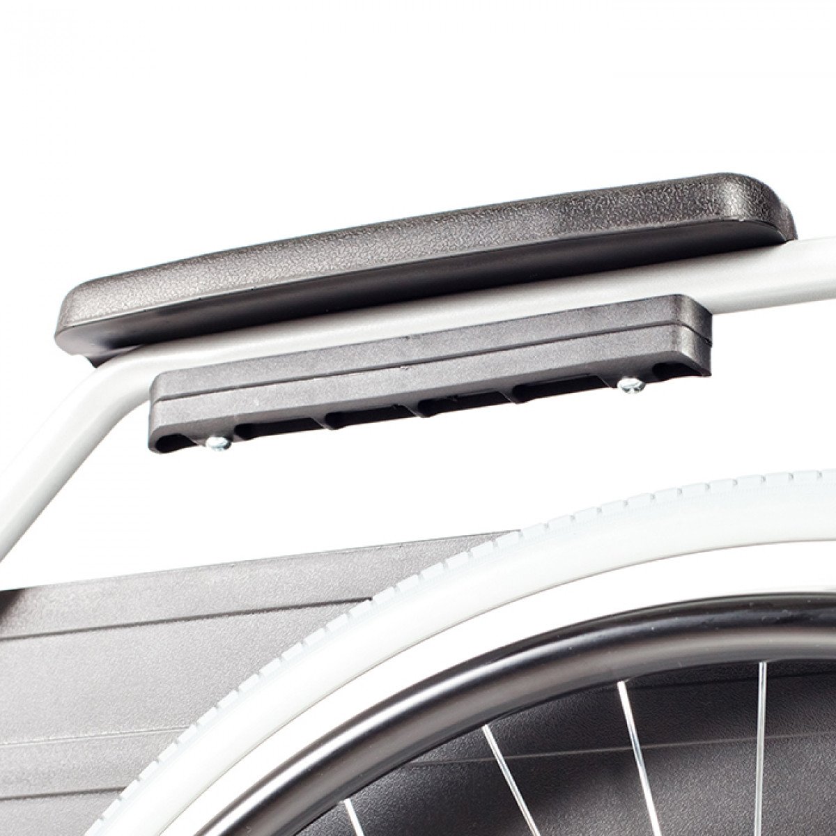 Рама выполнена из металла и рассчитана на длительное использование. Коляска складывается без инструментов, спинка также складывается, уменьшая габариты. Передние колёса — цельнолитые, задние — быстросъёмные, доступны в вариантах с цельнолитыми или пневматическими шинами. Обода с антискользящим покрытием упрощают управление, а стояночные тормоза с регулировкой обеспечивают контроль и безопасность во время остановки.