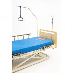 Кровать оснащена электрическими регулировками спины и ног, что помогает подобрать удобное положение, в том числе положение Фаулера — полусидя или полулёжа. Такое расположение тела улучшает дыхание, снижает нагрузку на позвоночник, облегчает общение и уход. Съёмные изголовье и изножье, а также складывающиеся боковые ограждения обеспечивают безопасность и удобство при ежедневном использовании.