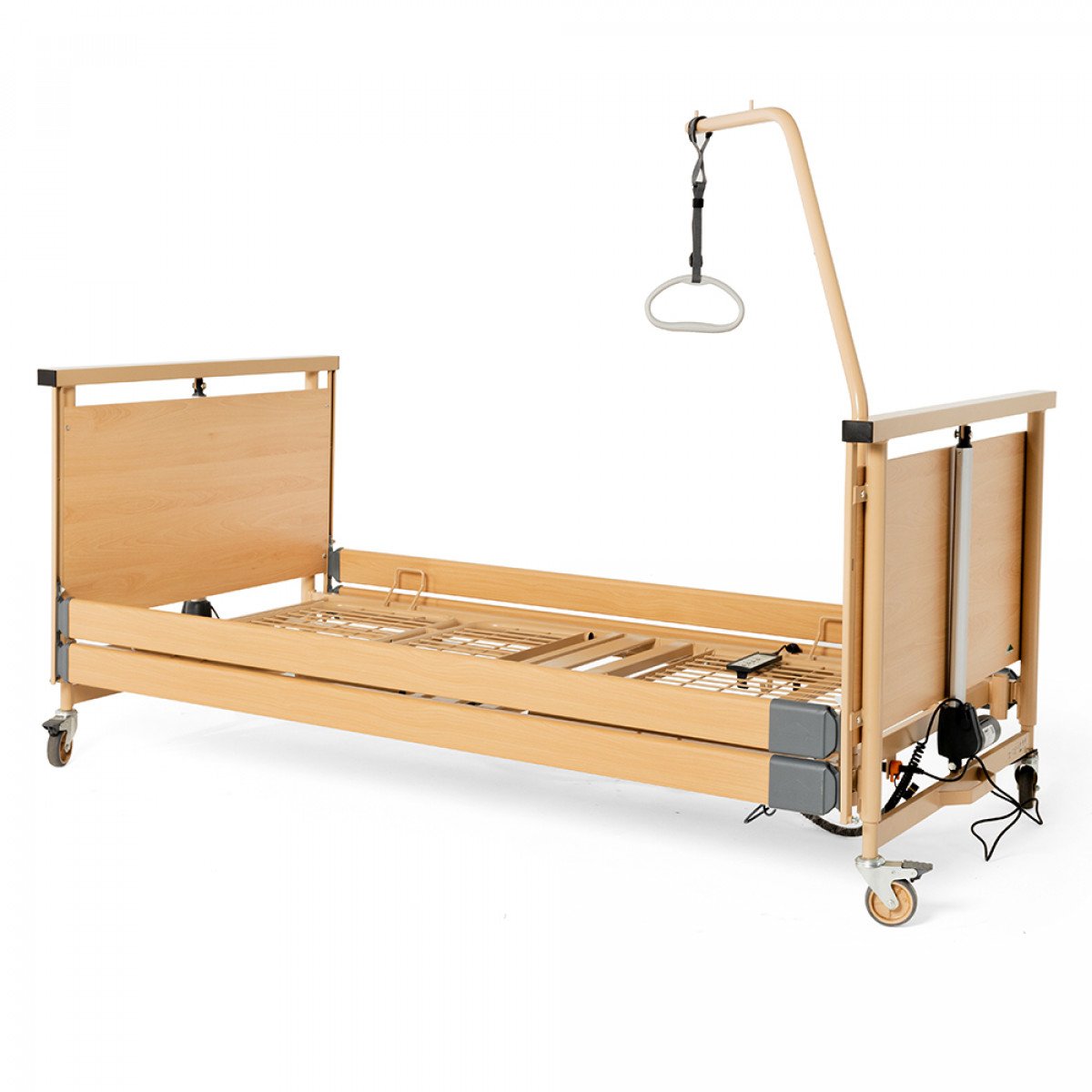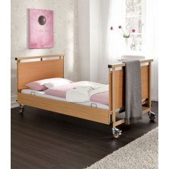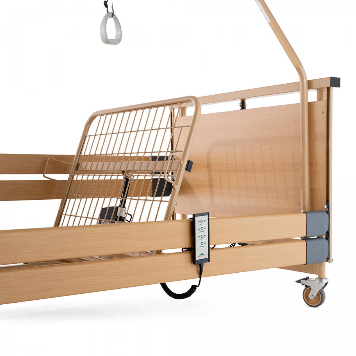 Модель оборудована телескопическими боковыми ограждениями, которые легко поднимаются и опускаются, а также надёжными панелями с безопасными закруглёнными углами. Прочные ручки на торцах позволяют удобно перемещать кровать и служат дополнительной точкой опоры для пользователя.