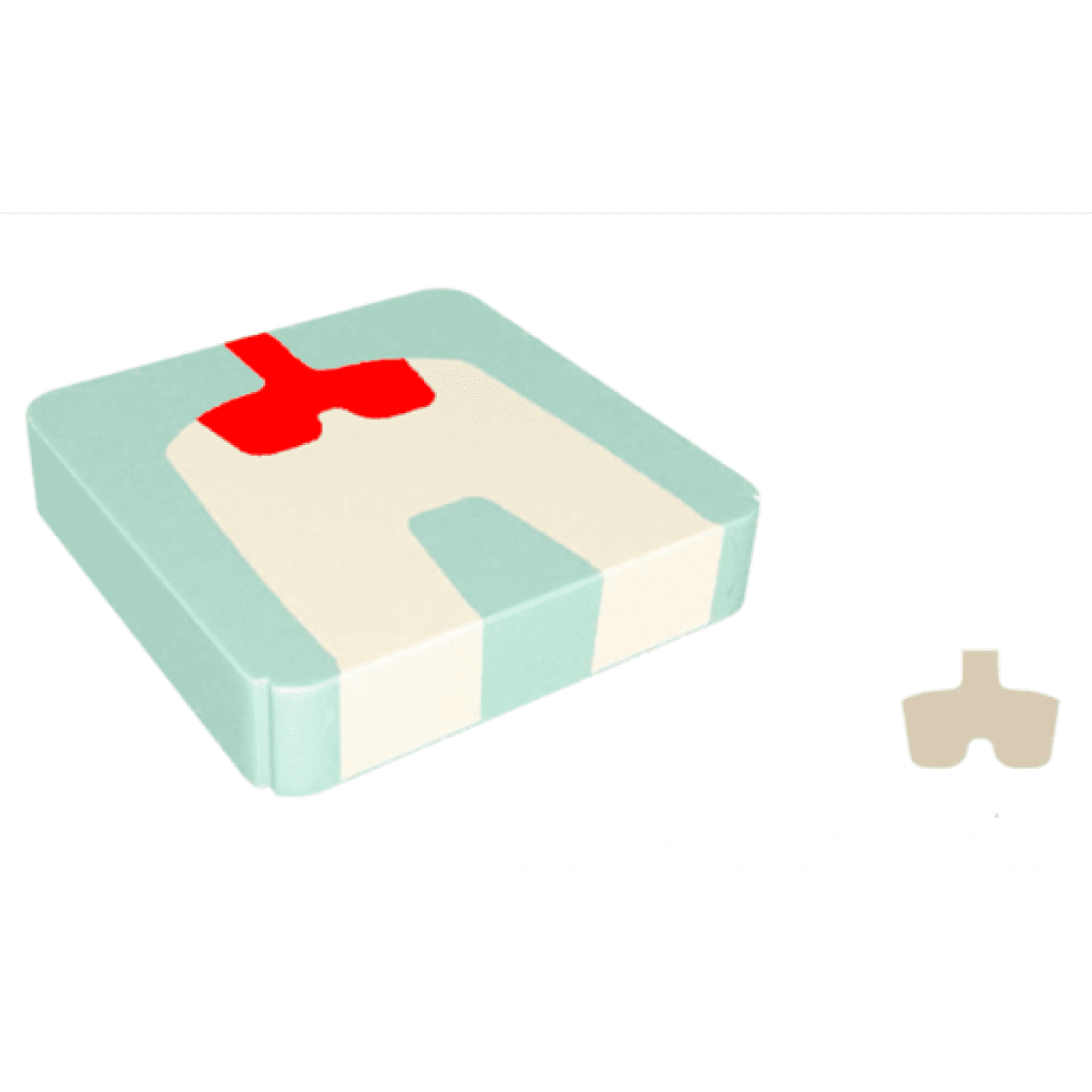 Подушка состоит из трёх типов пены: мягкой для области копчика и сидалищных бугров, средней плотности для бёдер и таза, и жёсткой для боковой поддержки бедра. Медиальные и боковые опоры минимизируют нежелательные движения ног, улучшая стабильность при сидячем дисбалансе.