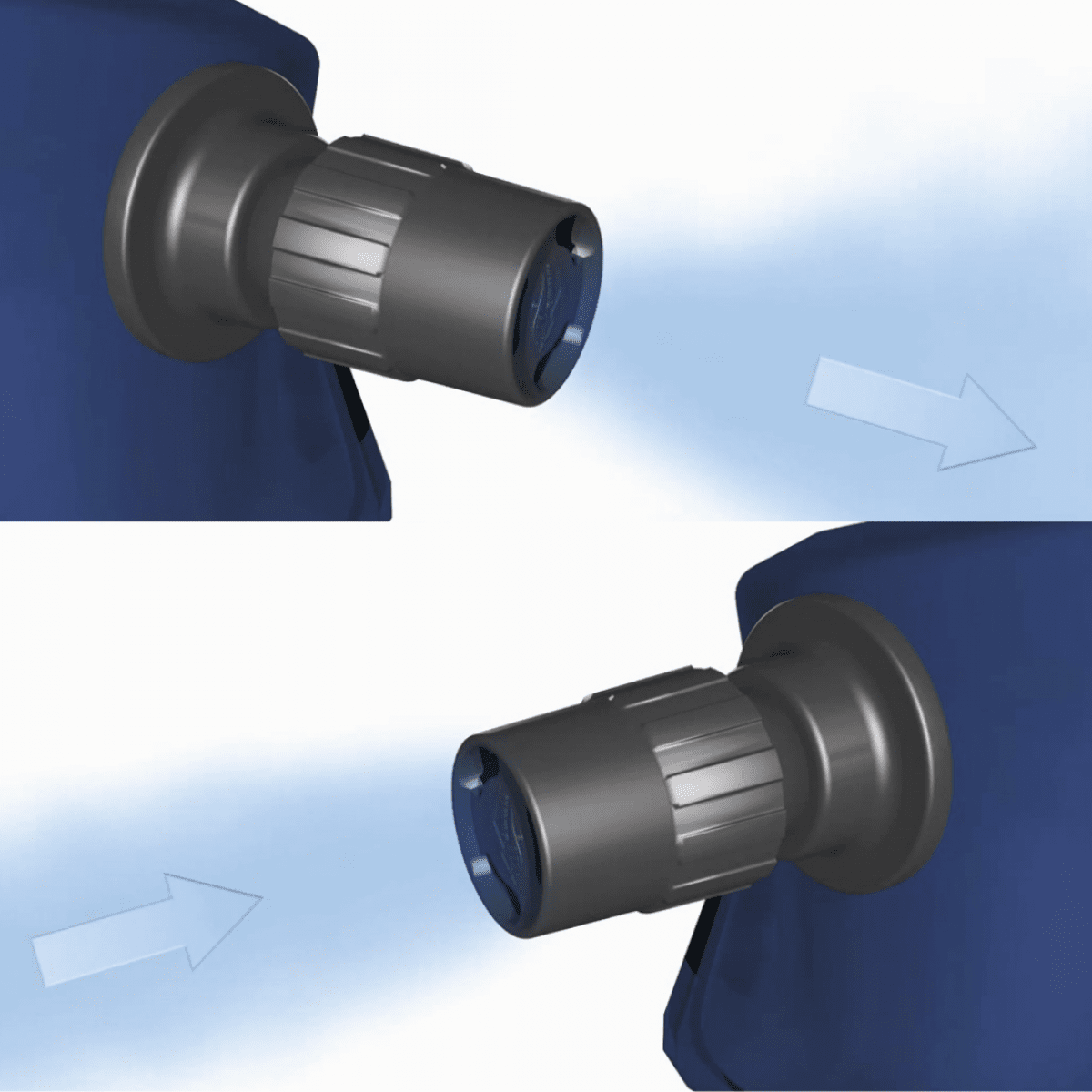 Пена с открытыми порами связана с тканью и работает по принципу «памяти формы»: при посадке воздух выходит через клапан, позволяя подушке адаптироваться к анатомии пользователя. Это обеспечивает стабильное положение, снижает риск пролежней и поддерживает правильную осанку. Высота подушки — 9 см. Отличительной особенностью модели является смещённый центр давления вперёд, что делает её более эффективной по сравнению с однокамерными аналогами.