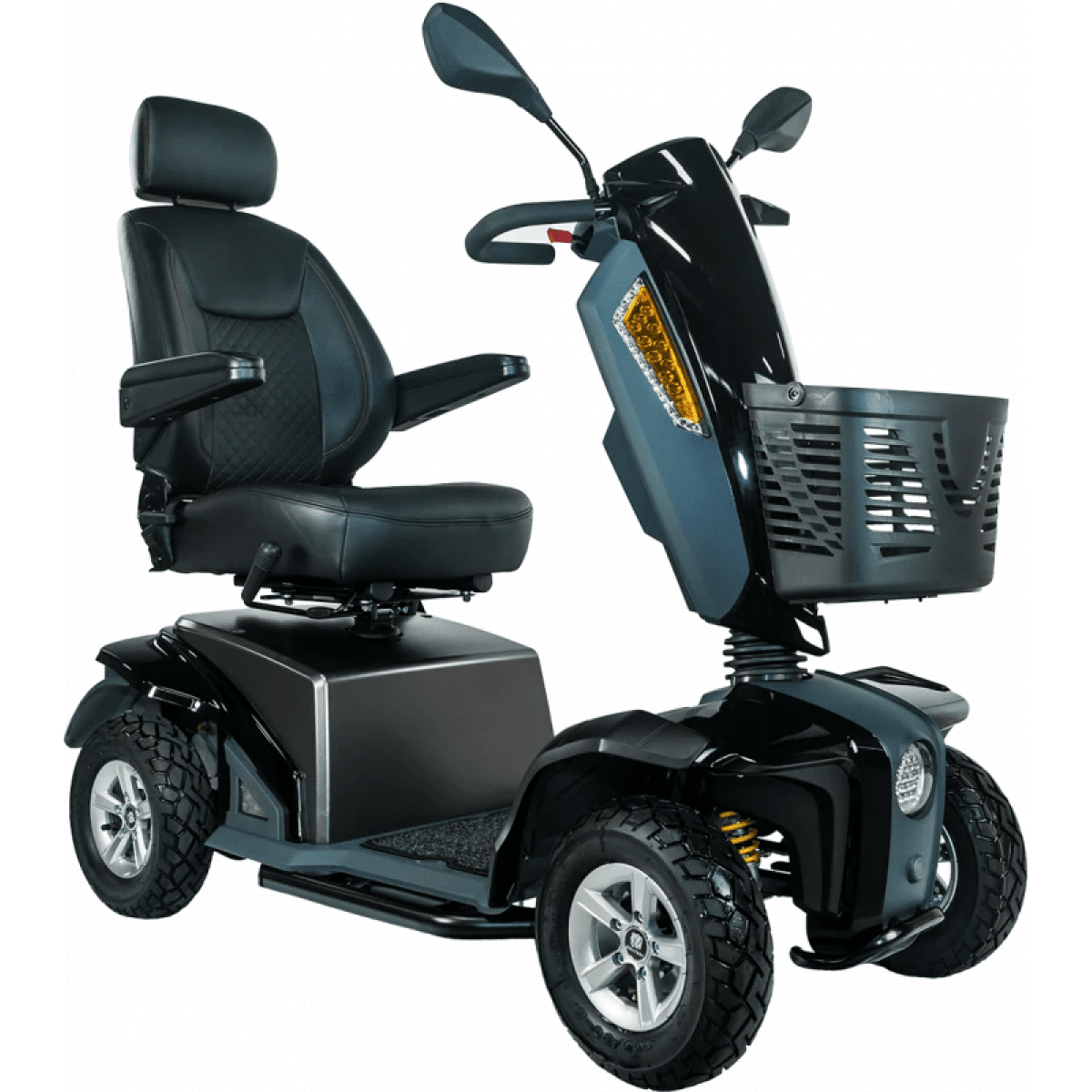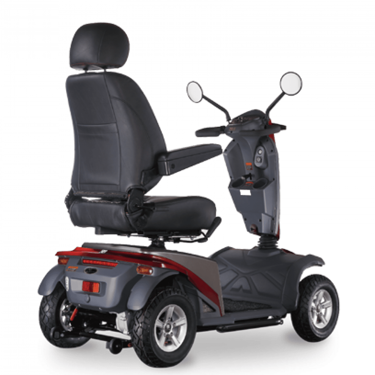 Сиденье вращается, оснащено анатомической спинкой, регулируемой по углу наклона, и съёмным подголовником. Подлокотники откидываются и фиксируются в нужном положении. Рулевая колонка регулируется по наклону, а также оснащена встроенными держателями для бутылок. Эти настройки позволяют точно подстроить скутер под индивидуальные потребности пользователя.