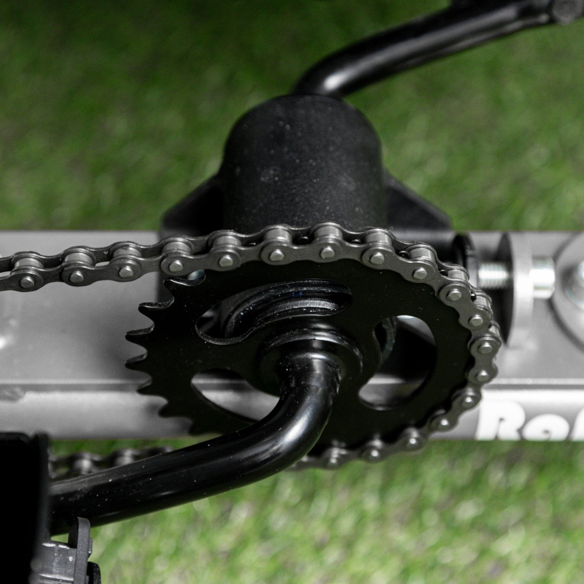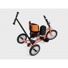 Велосипед обладает лёгким ходом благодаря уникальной геометрии рамы. Даже при минимальном усилии велосипед приводится в движении, что позволяет использовать его даже деткам со слабым тонусом мышц. Конструкция рамы выполнена таким образом, что велосипед легко может быть собран и разобран. Компактный, легко помещается в багажник автомобиля. Эргономическое сидение регулируется по высоте. Стояночный тормоз блокировки движения позволяет использовать велосипед в качестве комнатного тренажёра.