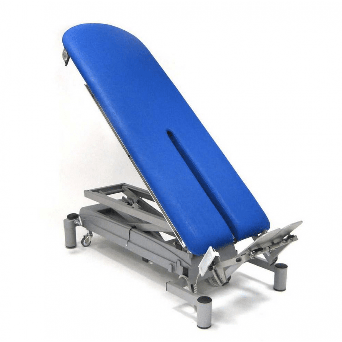 Vario Line Tilt table оснащён механической системой изменения угла наклона, которая позволяет поэтапно переводить пациента из горизонтального положения в вертикальное. Принцип работы основан на контролируемом изменении угла стола без резких движений, что даёт возможность точно дозировать нагрузку и адаптировать положение тела под текущее состояние пациента. Такой подход помогает постепенно подключать мышцы к работе и поддерживать стабильную реакцию сердечно-сосудистой и дыхательной систем.