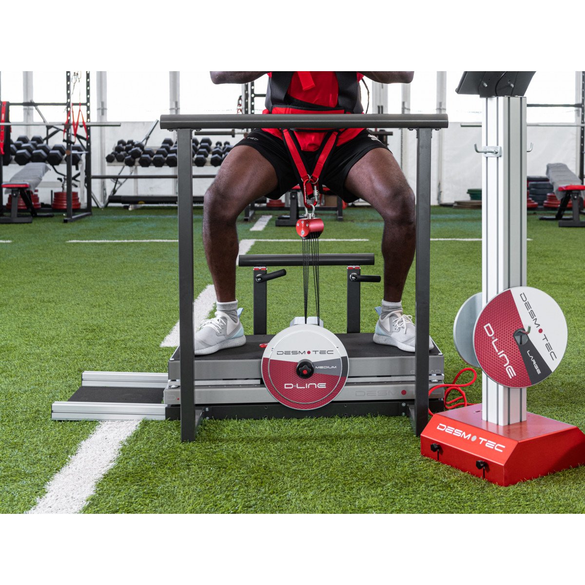 Тренажёр работает по принципу изоинерционной тренировки, что позволяет модулировать ускорение пользователя и оптимизировать нагрузку на мышцы. Это идеально подходит для восстановления после травм передних крестообразных связок, тендинопатии надколенника и ахиллова сухожилия. Включает упражнения, такие как приседания, выпады и моноподальные работы. Desmotec D.Line (Full) оснащён тензодатчиками D.Load, которые в реальном времени передают данные о состоянии пациента на программное обеспечение, предоставляя точную информацию для оценки и корректировки тренировочного процесса.