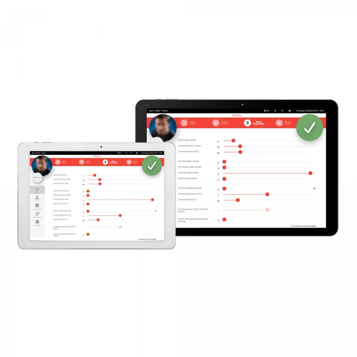 - Встроенные тесты: силовой тест, изометрический силовой тест, тест на равновесие, тест на выносливость