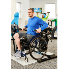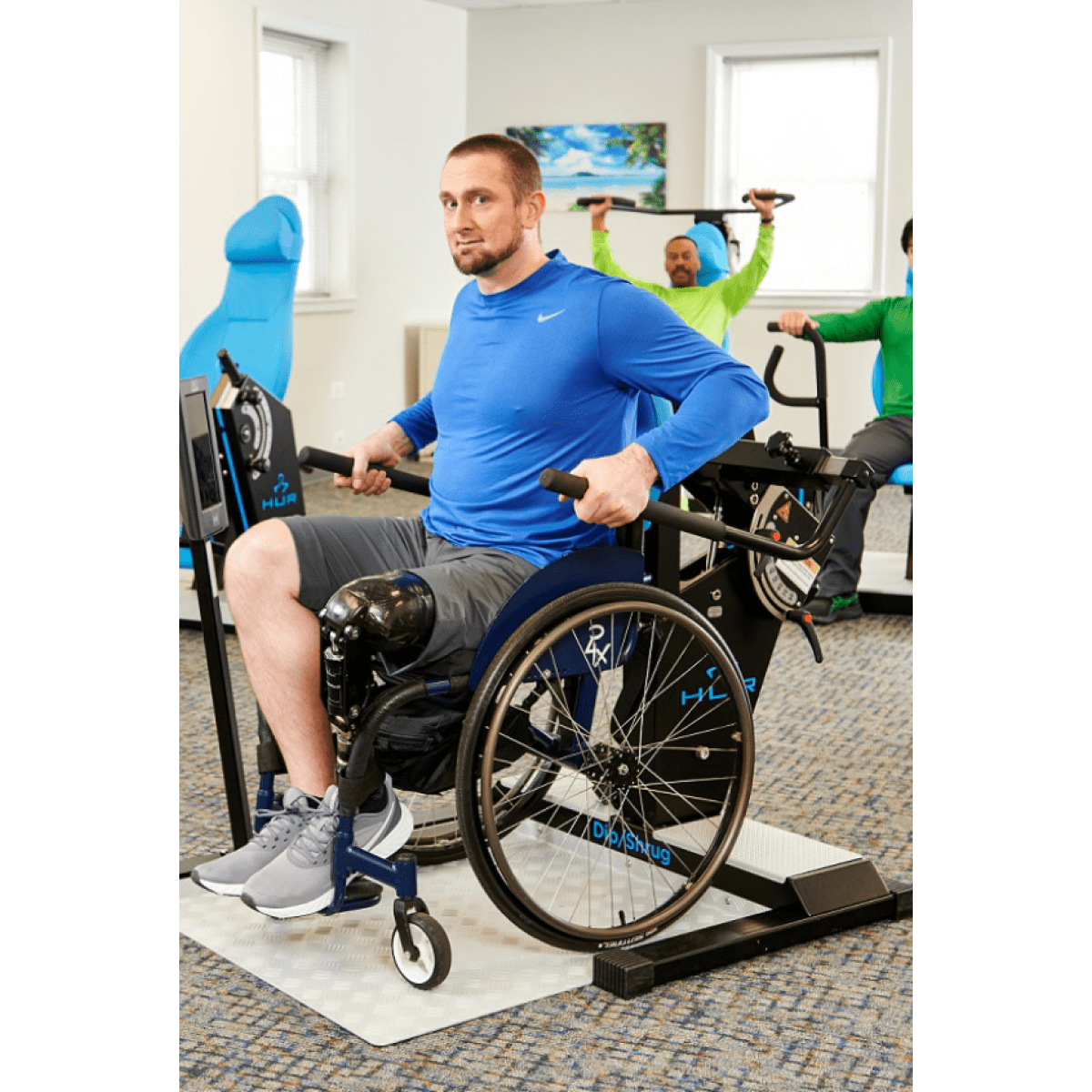 Hur Easy Access 9125 (Хур Изи Аксес 9125) — это тренажёр, который позволяет пользователю тренироваться, не вставая с инвалидной коляски. Он включает в себя две функции: жимы вниз для проработки трицепсов, бицепсов и задних пучков дельт, а также тяги вверх, которые активизируют мышцы шеи, верхней части спины и широчайшие мышцы. Это позволяет эффективно тренировать верхнюю часть тела, уделяя особое внимание плечам и спине.
