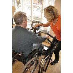 Кроме того, тренажёр оснащён приставным сиденьем с фиксированной или регулируемой высотой, что позволяет удобно настраивать тренажёр под конкретного пользователя. Это идеальный вариант для тех, кто может передвигаться самостоятельно.