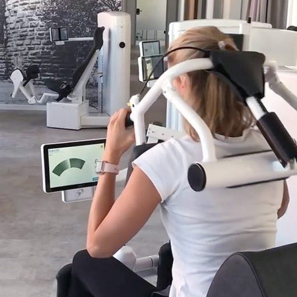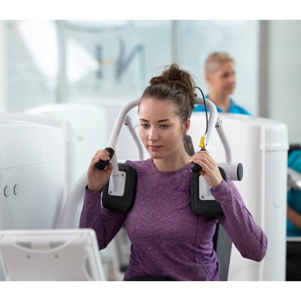 - Уникальная фиксация ног исключает активацию сильных сгибателей бедра, помогая воздействовать на область живота