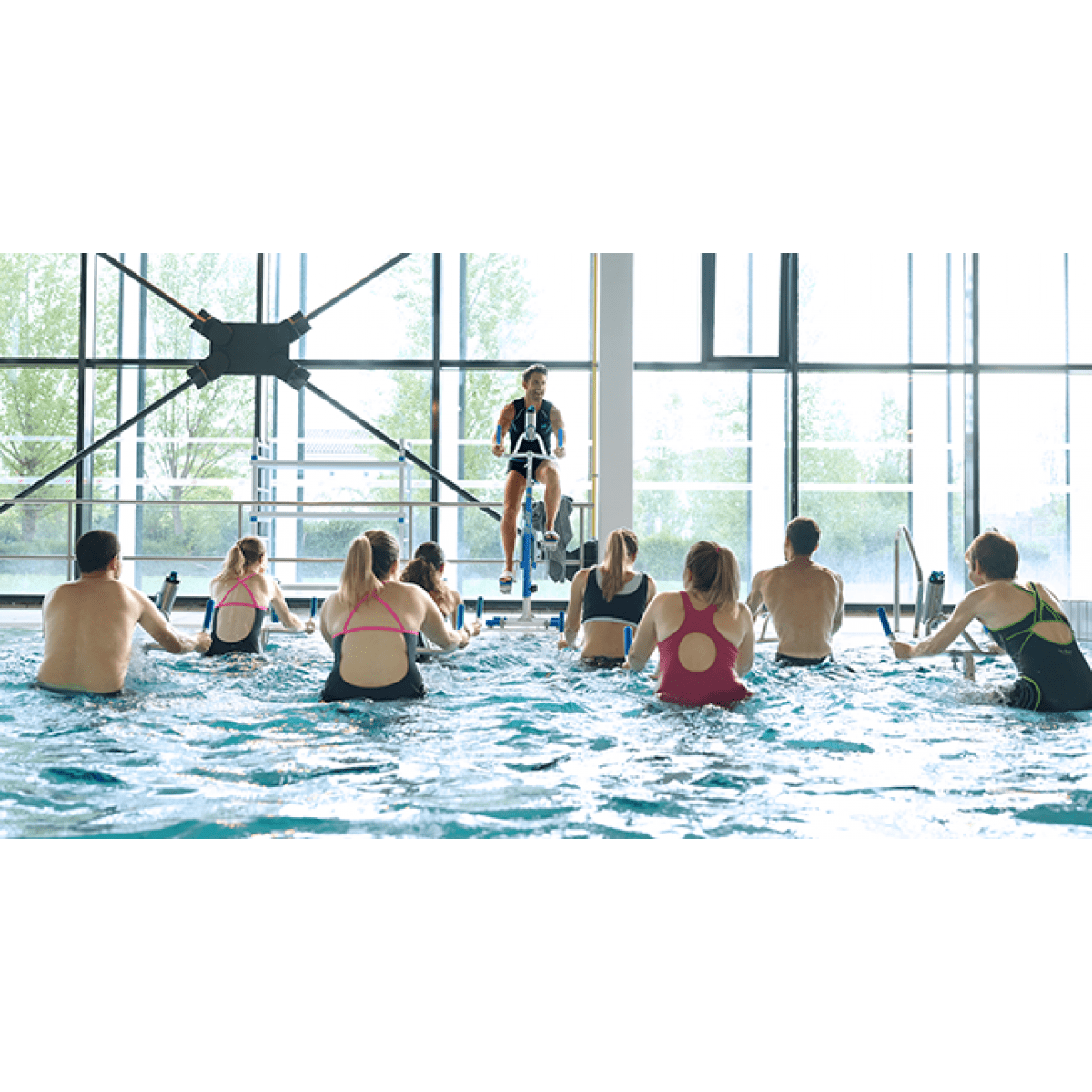 Аквабайк устойчиво стоит в воде, подходит для пользователей разной комплекции и легко настраивается под индивидуальные параметры. Быстрая система регулировок позволяет изменить положение руля, седла и рамы за считанные секунды. Перфорированная конструкция обеспечивает быстрый слив воды при извлечении из бассейна, а защита от коррозии делает тренажёр надёжным даже при использовании в хлорированной или морской воде. Идеальное решение для персональных и групповых тренировок.