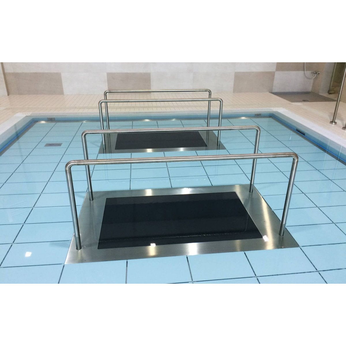Pooltrack Standard — вариант для уже существующего бассейна. Дорожка устанавливается без сложных строительных работ и не требует слива воды. Оснащена локальным пультом управления и аварийной остановкой, занимает минимум пространства и подходит как для реабилитации, так и для интенсивных тренировок. При необходимости управление можно вынести за пределы бассейна, чтобы инструктор контролировал процесс.
