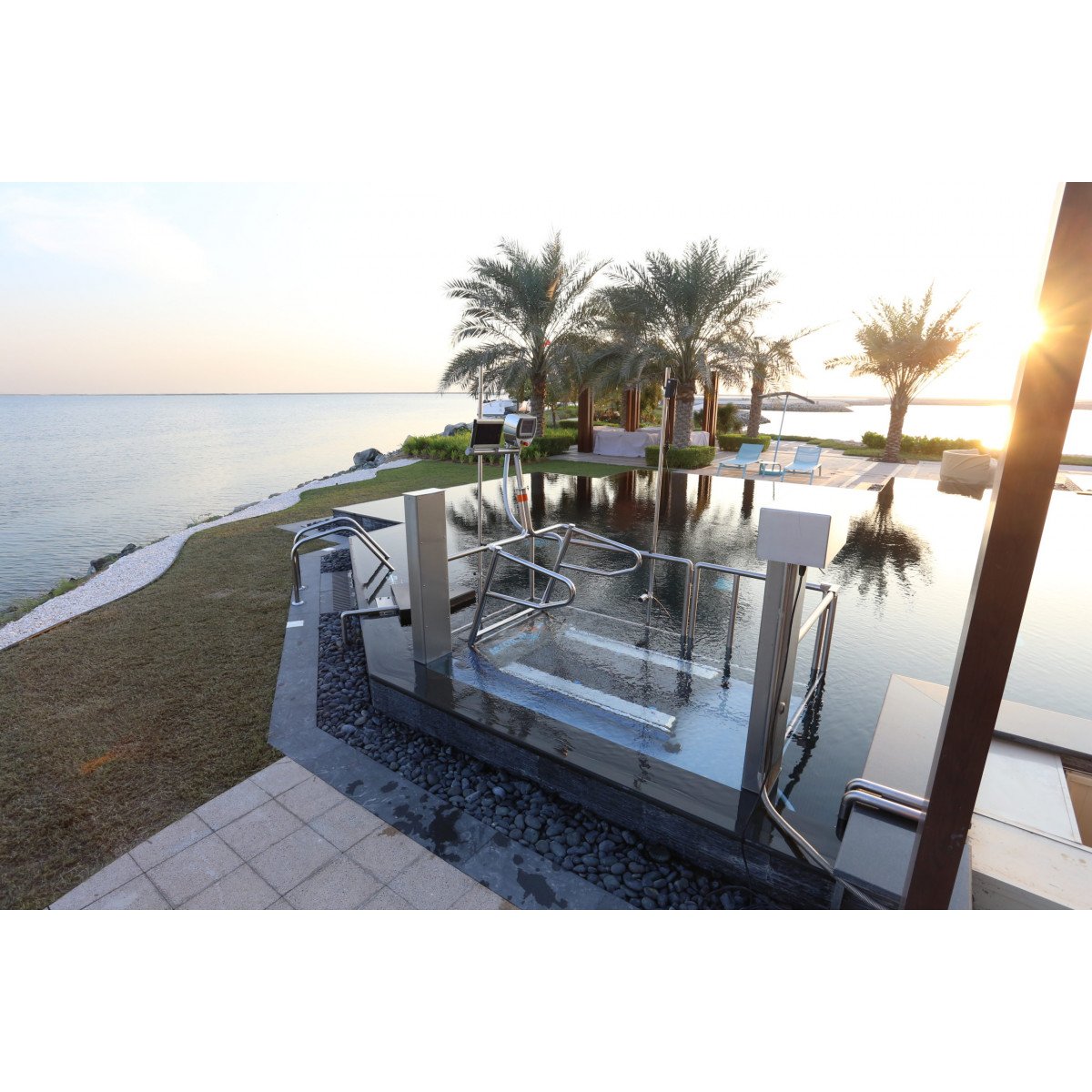 Pooltrack Professional — встраиваемая модель для бассейнов с регулируемым по глубине дном. Помимо изменения скорости, здесь можно менять уровень воды всего за несколько минут, точно дозируя нагрузку. Легкосъёмные поручни позволяют трансформировать пространство: проводить акватренировки, занятия по реабилитации или использовать бассейн для плавания без ограничений. Это решение для центров, где важны функциональность, гибкость настроек и высокий уровень оснащения.