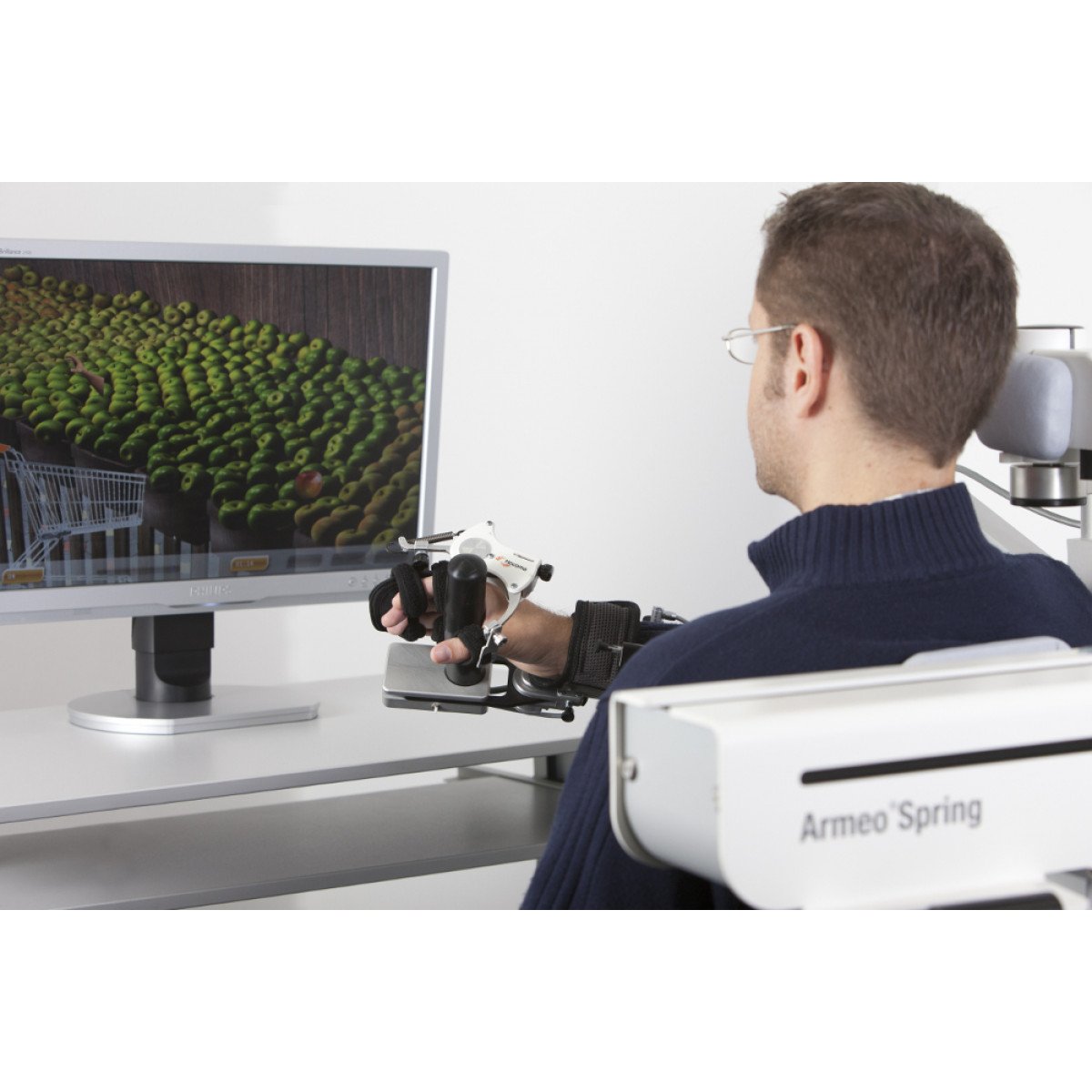 Комплекс Hocoma Armeo Spring (Хокома Армео Спринг) — это роботизированный тренажёр, предназначенный для реабилитации верхних конечностей у пользователей с инсультами, травмами головного и спинного мозга, а также другими неврологическими нарушениями. Он использует современную программу реабилитации, ориентированную на восстановление двигательных функций путём интенсивных и повторяющихся упражнений, направленных на выполнение практических задач. Это способствует компенсации утраченных функций через нейропластичность, что подтверждается исследованиями в области неврологии.