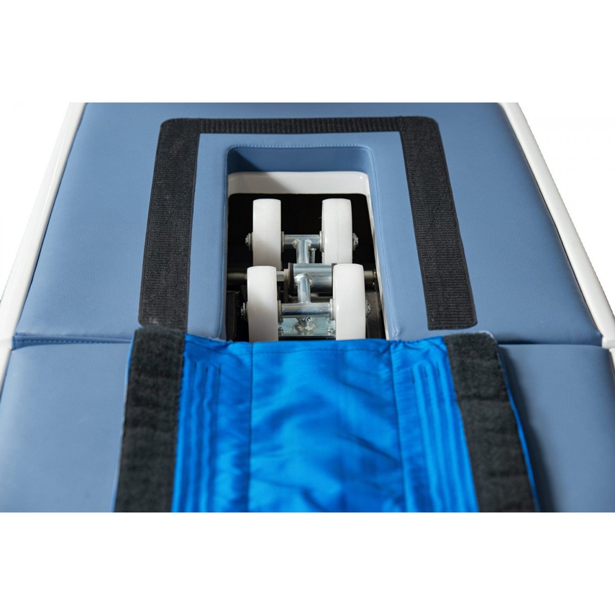 Подъёмный механизм роликов обеспечивает плавную регулировку их высоты, а сами ролики точно повторяют контур спины. Механизм позволяет локально воздействовать на проблемные участки позвоночника, а также на суставы. Комплексные процедуры включают в себя паравертебральный вибрационный массаж и растяжку суставов верхних и нижних конечностей.