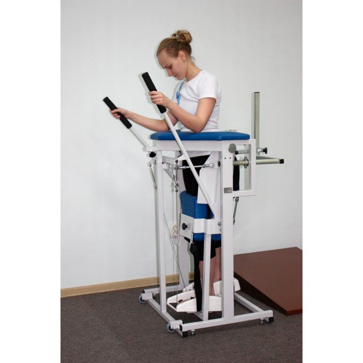 Система стабилизации туловища удерживает вертикальное положение, а активная работа верхних конечностей и плечевого пояса способствует тренировке мышц спины, живота и поворотам туловища и таза. Аппарат улучшает кровообращение, стимулирует дыхательную систему и помогает предотвращать застойные процессы в организме. «Имитрон» доступен в двух вариантах — для взрослых и для детей.